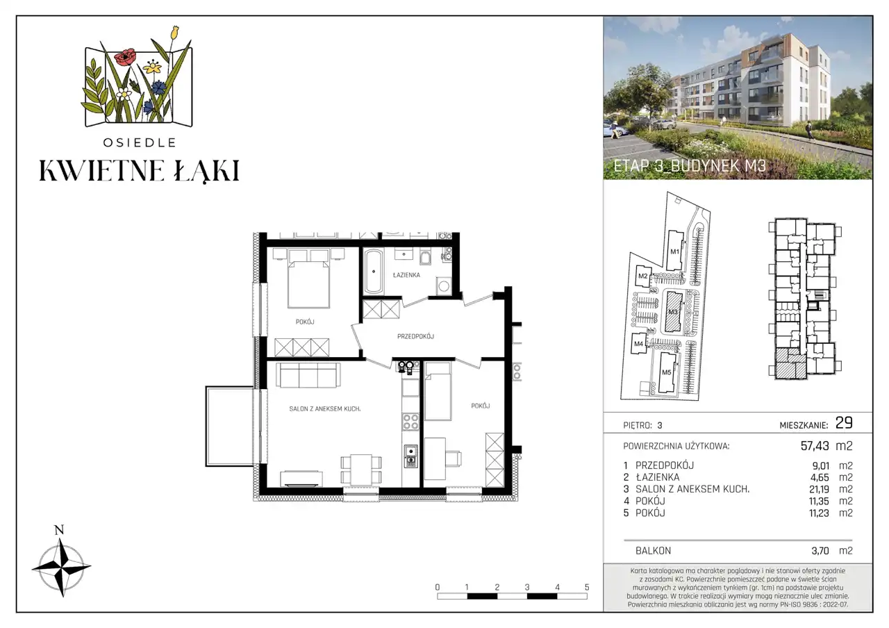 - Charakterystyka mieszkania 57.43 m2, 3 pokoje
