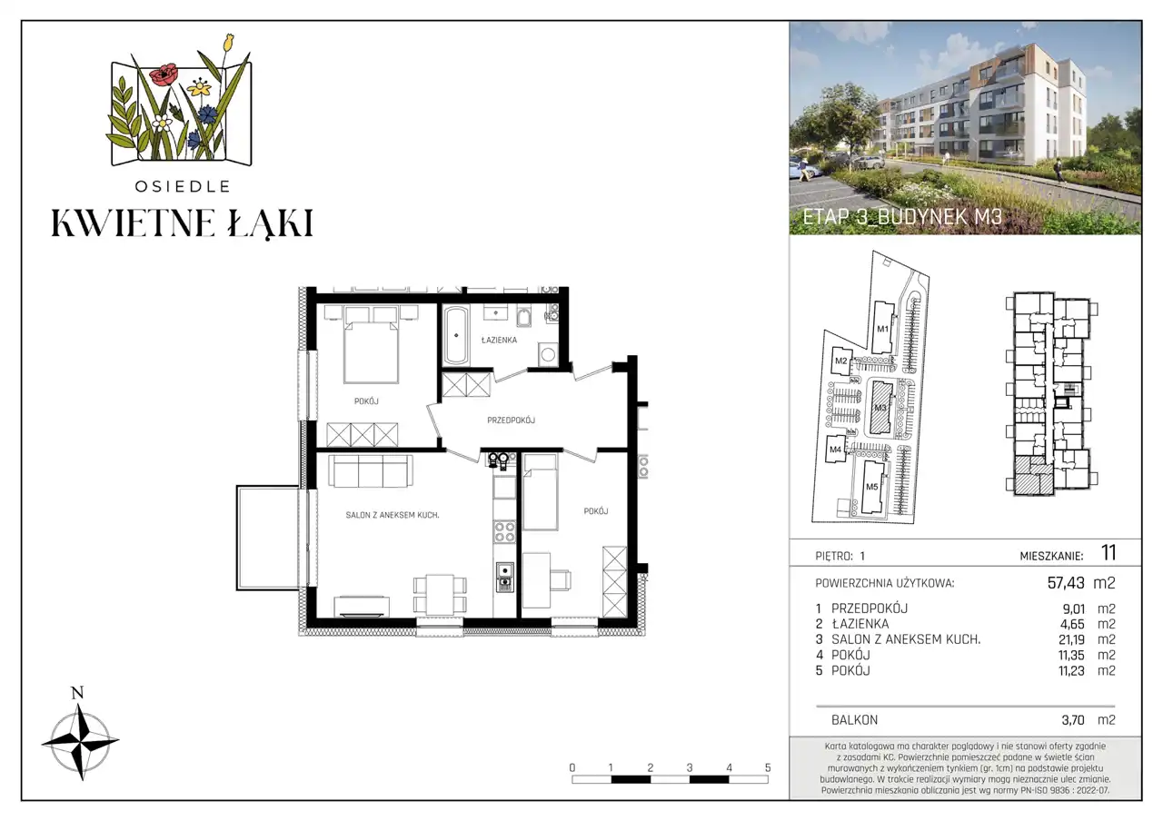 - Charakterystyka mieszkania 57.43 m2, 3 pokoje