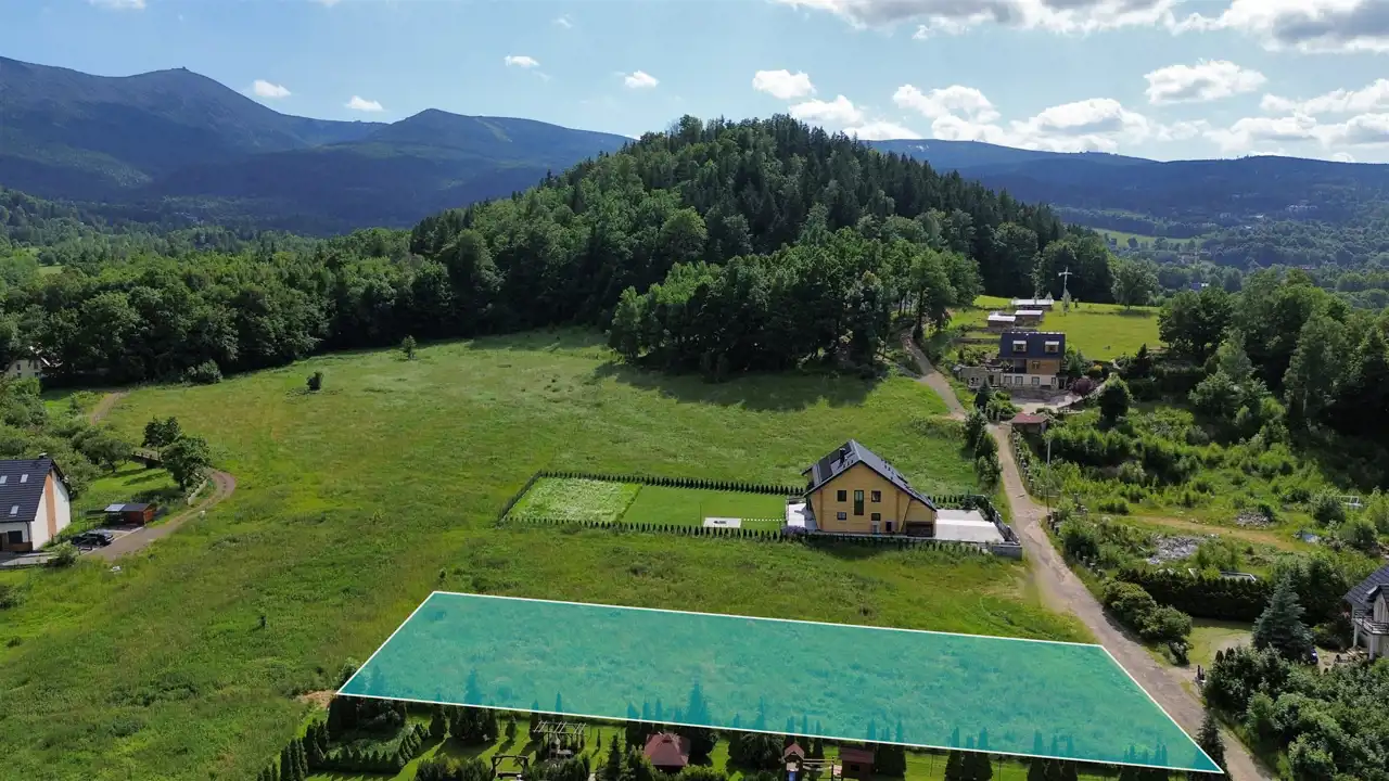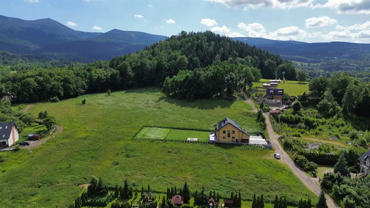 Piękna działka o powierzchni 3527 m2 z widokiem na Śnieżkę i pasmo gór! Grunt posiada pozwolenie na budowę Budynku z 4 apartamentami wakacyjnymi oraz na budowę budynku jednorodzinnego dwulokalowego!