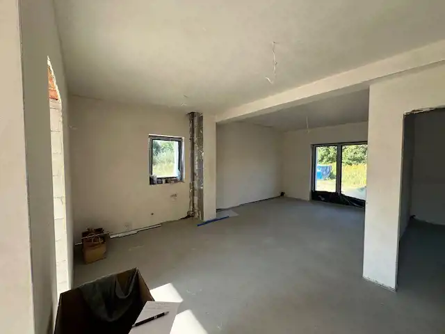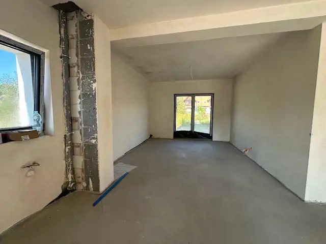 Mieszkanie mieści się na parterze , cztero-mieszkaniowego budynku. W skład wchodzi salon z aneksem kuchennym, dwie sypialnie i łazienka.