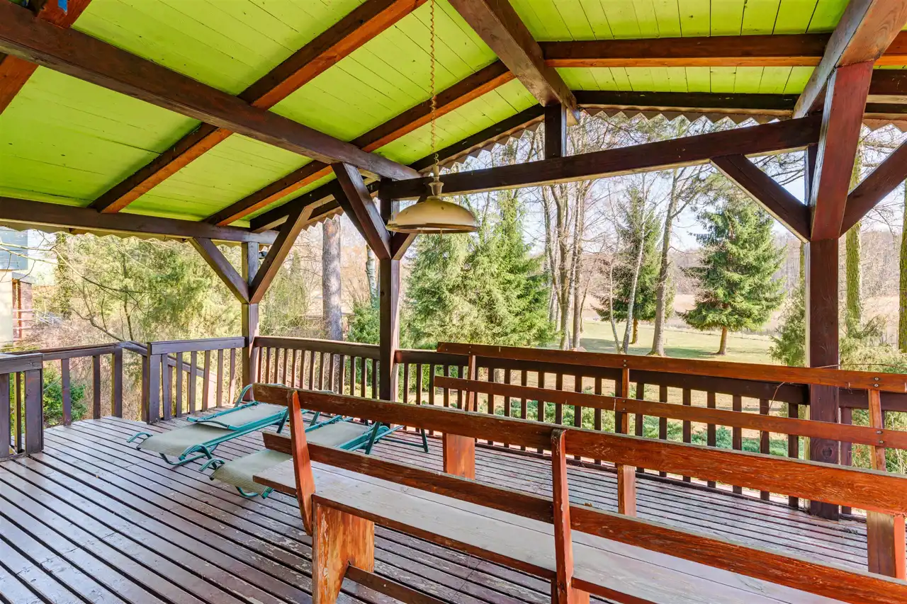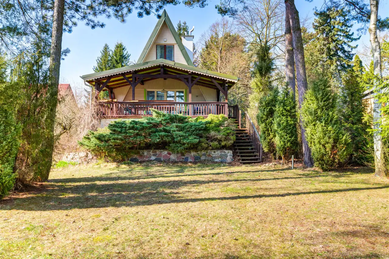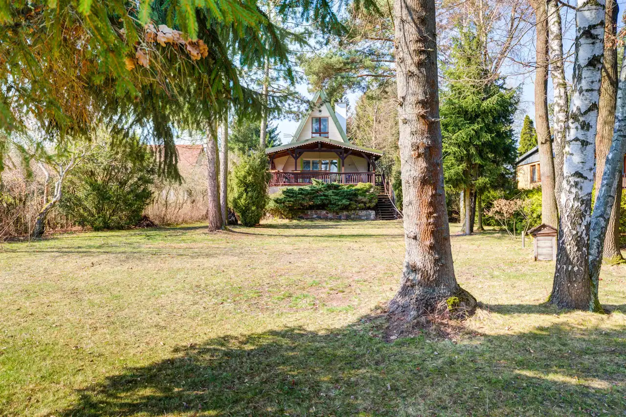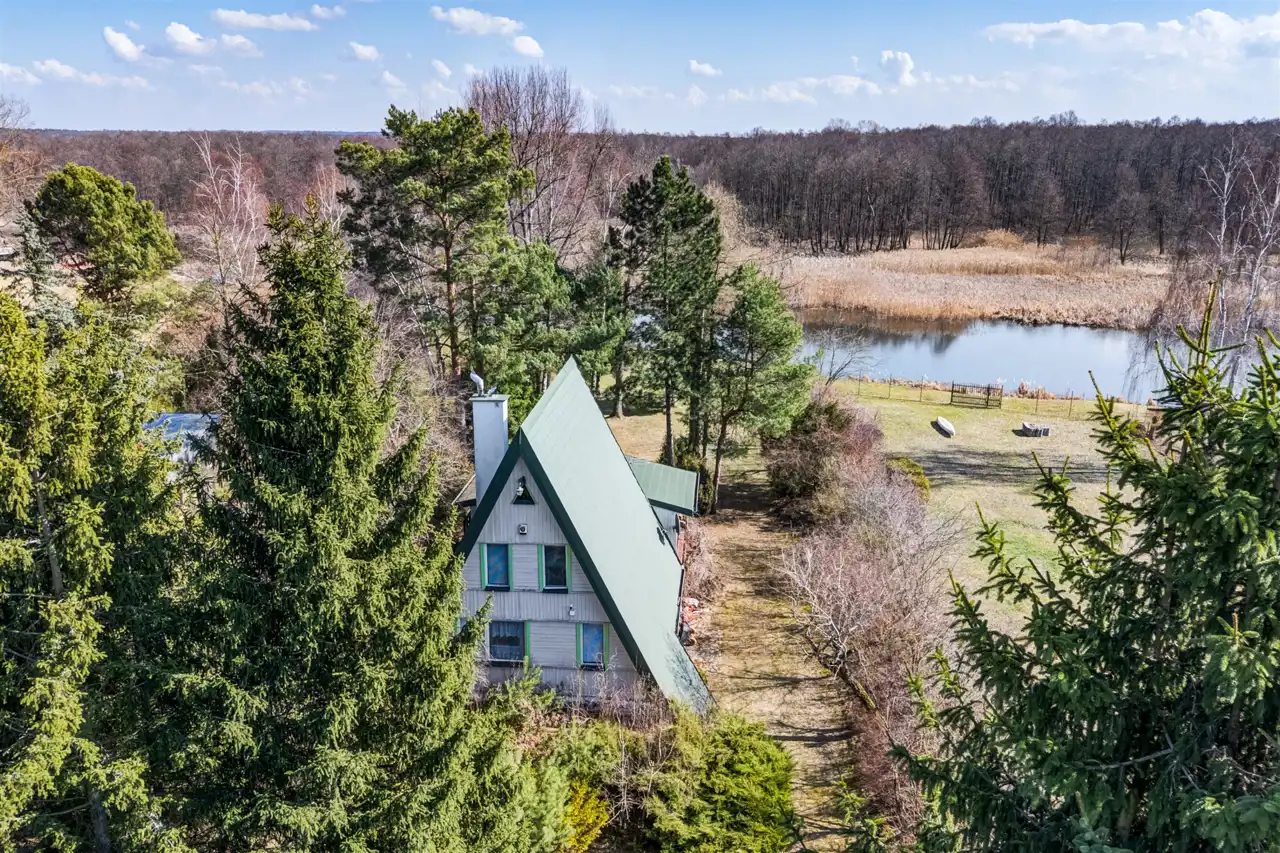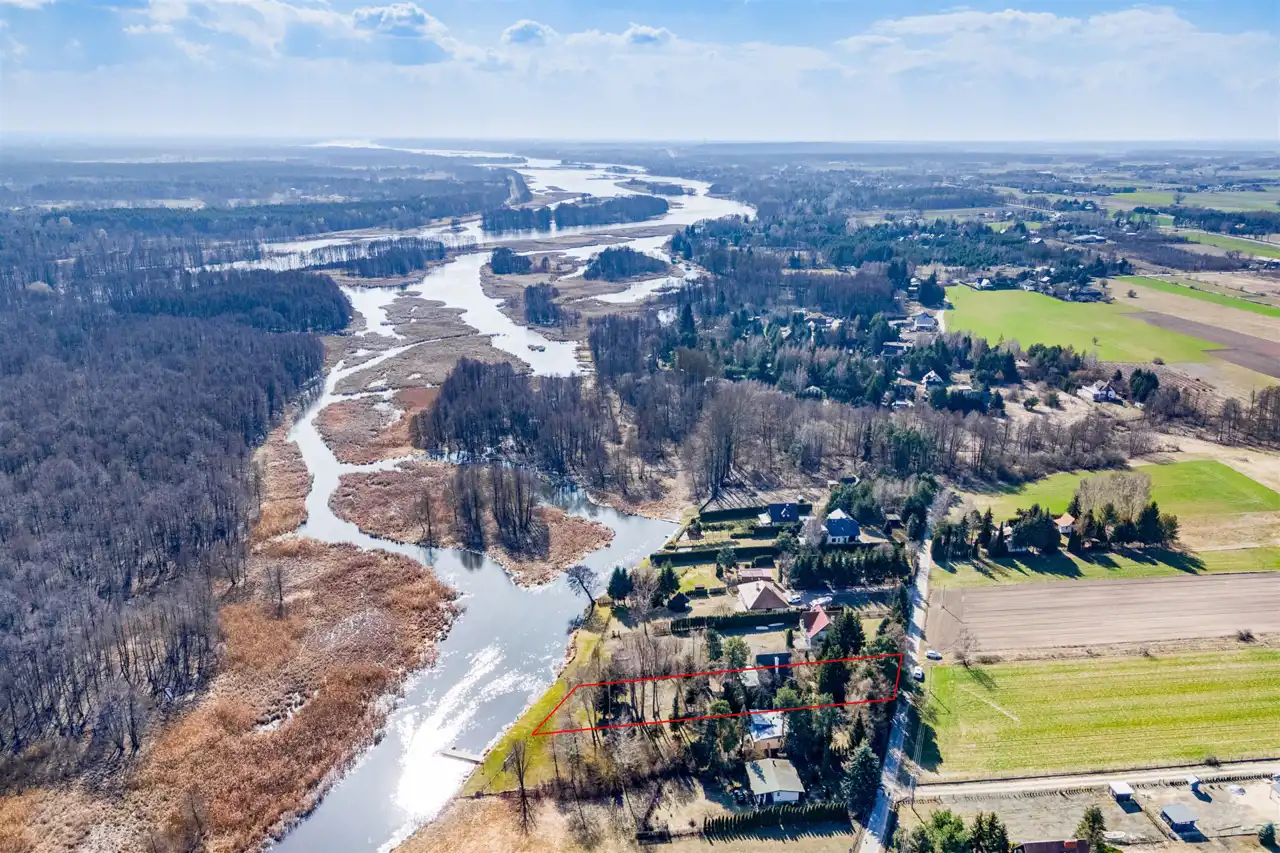 Na sprzedaż drewniany dom z duszą w typie Brda z lat 70-tych posadowiony na działce o powierzchni 2081 mkw z bezpośrednim dostępem do rzeki Narew. Działka w kształcie prostokąta o wymiarach 25 x 100 m. 25 metrów lini brzegowej rzeki z komfortową głębokością tranzytową - oznacza to, ze koryto rzeki jest dostępne dla łodzi motorowych nawet z dużym zanurzeniem. Na działce starodrzew sosnowo-świerkowy i nasadzenia wlasne. Mozliwość budowy własnego pomostu. Działka ogrodzona aktualnie z 3 stron z bramą wjazdową.