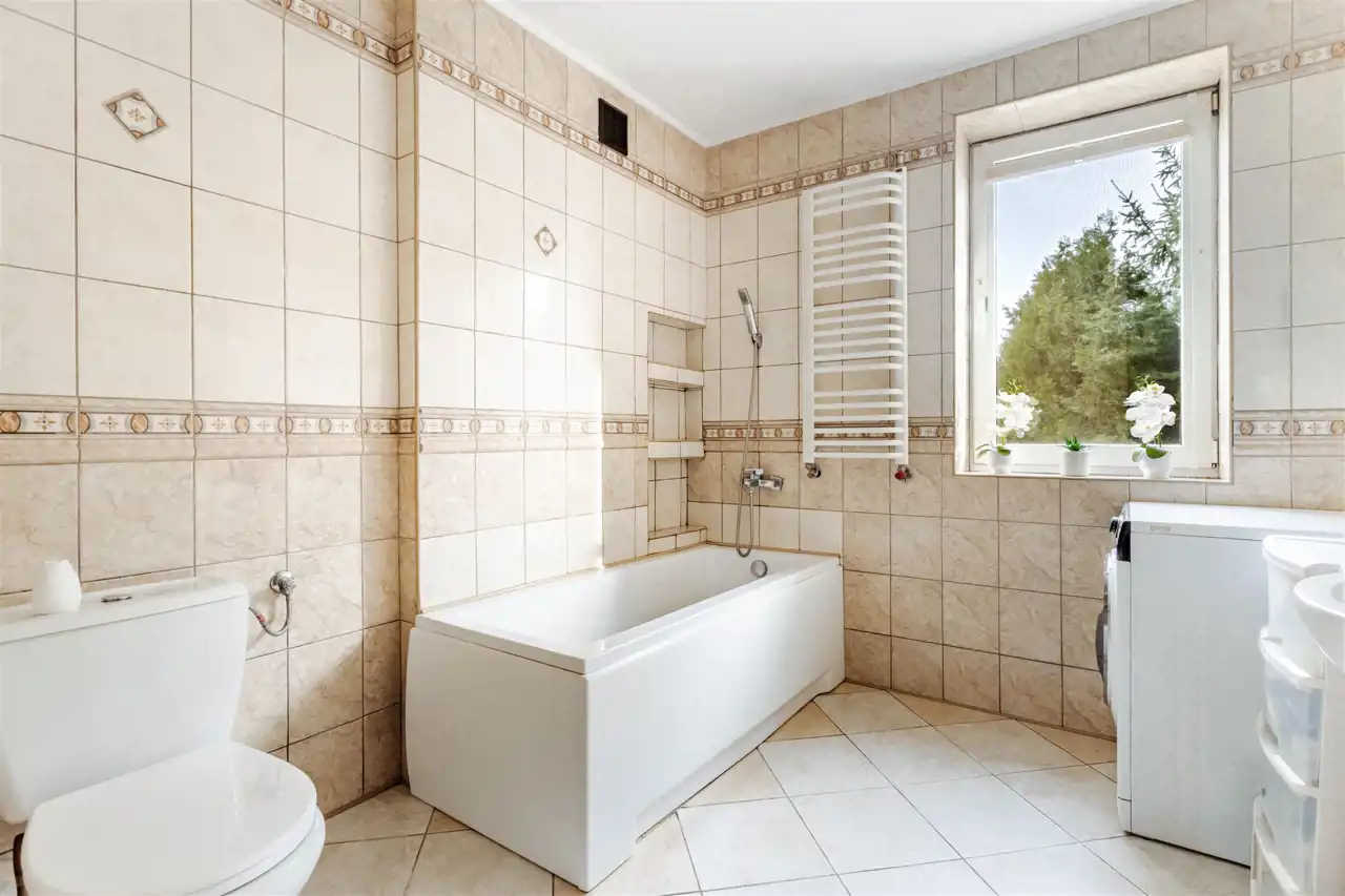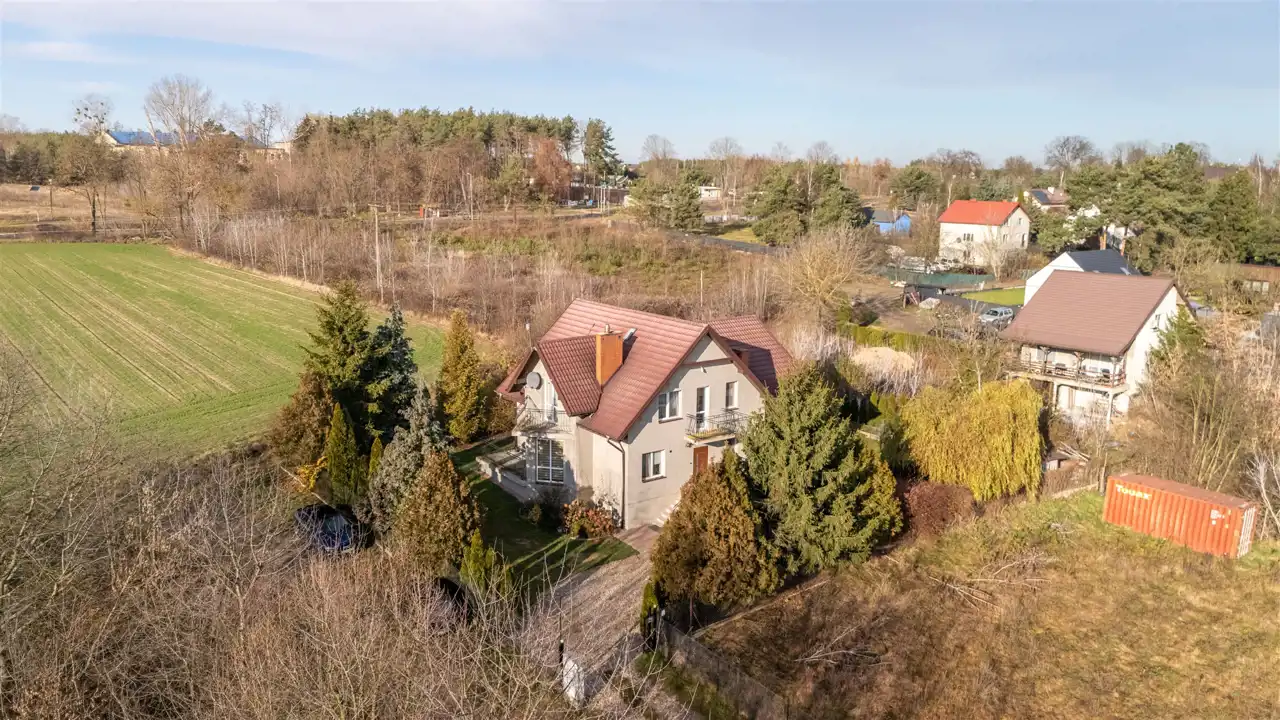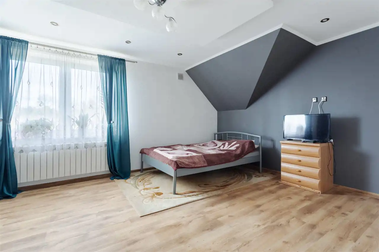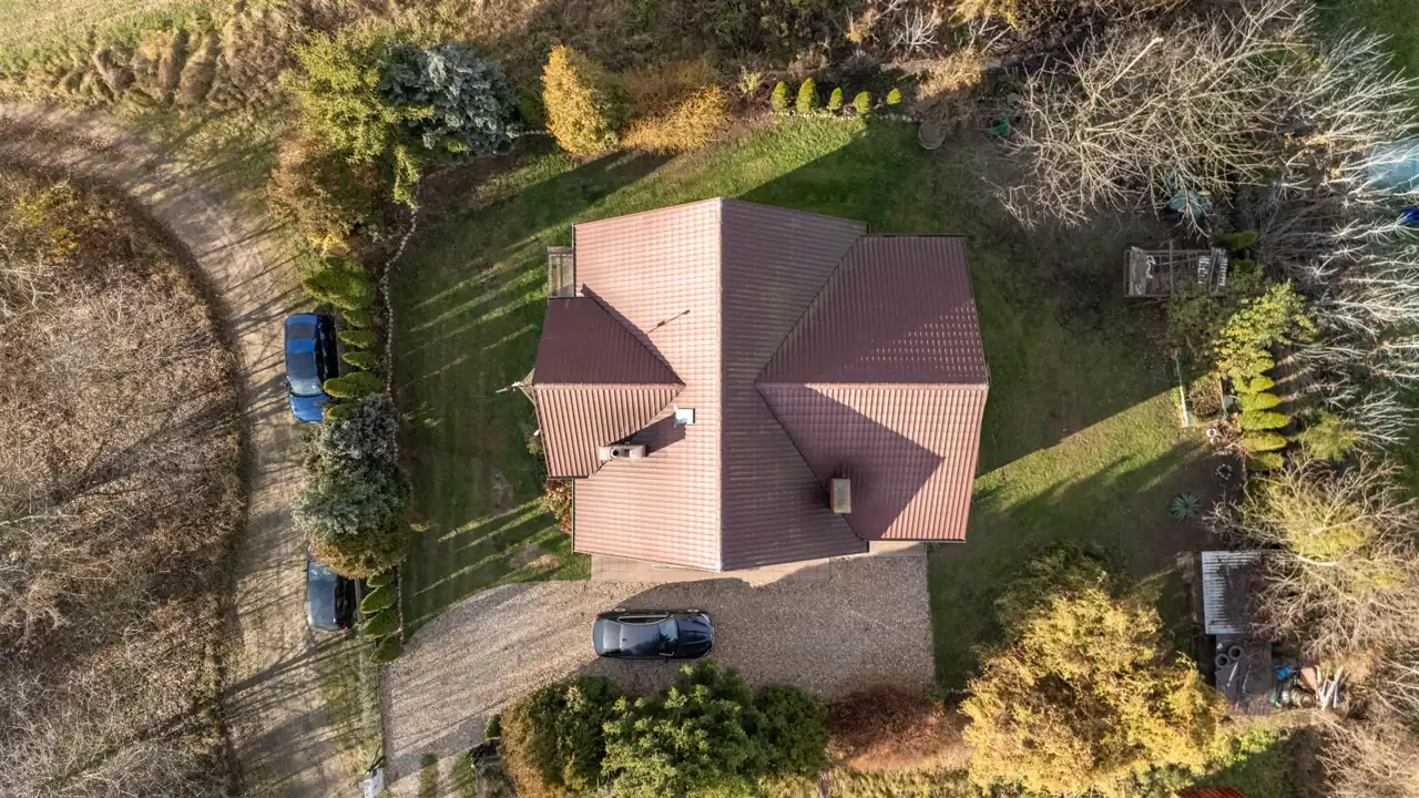 Dom ogrzewany systemem tradycyjnym (piec na ekogroszek) z grzejnikami naściennymi. Wystrój wnętrza jest klasyczny, wymaga odświeżenia, pozostała do wykonania łazienka na poddaszu. Na poddaszu zaadoptowano dodatkowo powierzchnię nad garażem, dzięki czemu przestrzeń może stanowić oddzielne mieszkanie / studio. Dom jest bardzo dobrze docieplony. Elewacja domu oraz taras pozostały do dokończenia.
