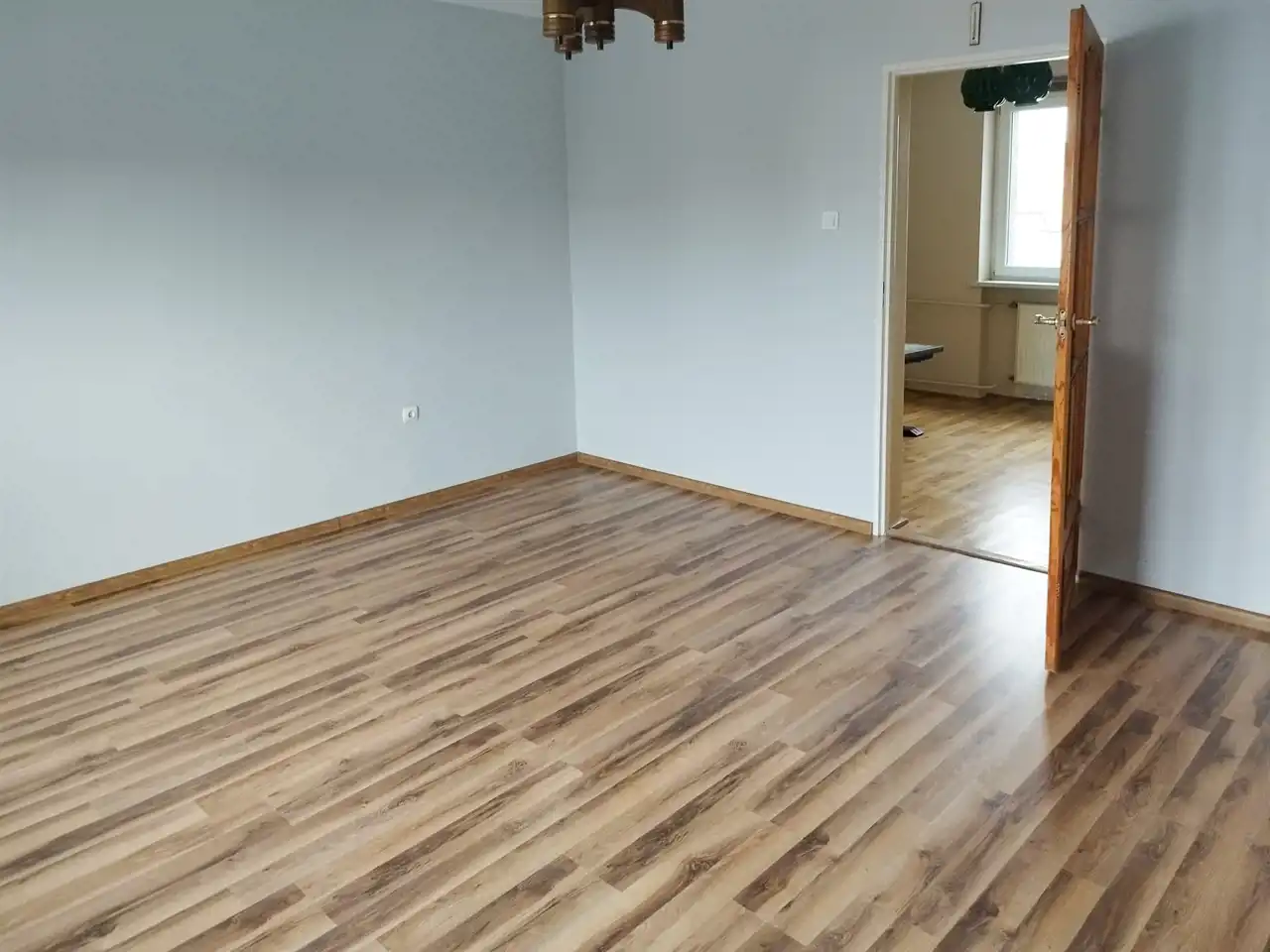 W jednej części składa się z: 2 pokoje, kuchnia, łazienka i wc - o powierzchni około 80 m2