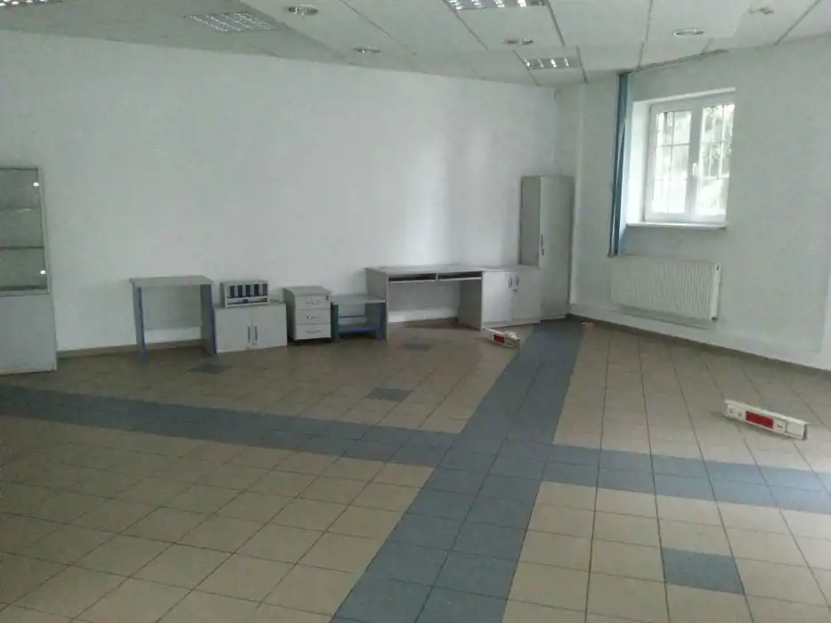 Budynek o powierzchni 324,70 m2 (KW: 336 m2) posiada 1 kondygnację naziemną. W obiekcie znajduje się 9 pomieszczeń użytkowych o powierzchniach 9,7 − 56 m2, a także pomieszczenia socjalne, magazynowe oraz 3 sanitariaty. Do budynku prowadzi 5 wejść: 1 od strony północnej, 1 od strony wschodniej oraz 3 wejścia od strony południowej. Dobra ekspozycja, w pierwszej linii zabudowy od drogi głównej. Z tyłu nieruchomości znajduje się parking na 7 miejsc parkingowych.