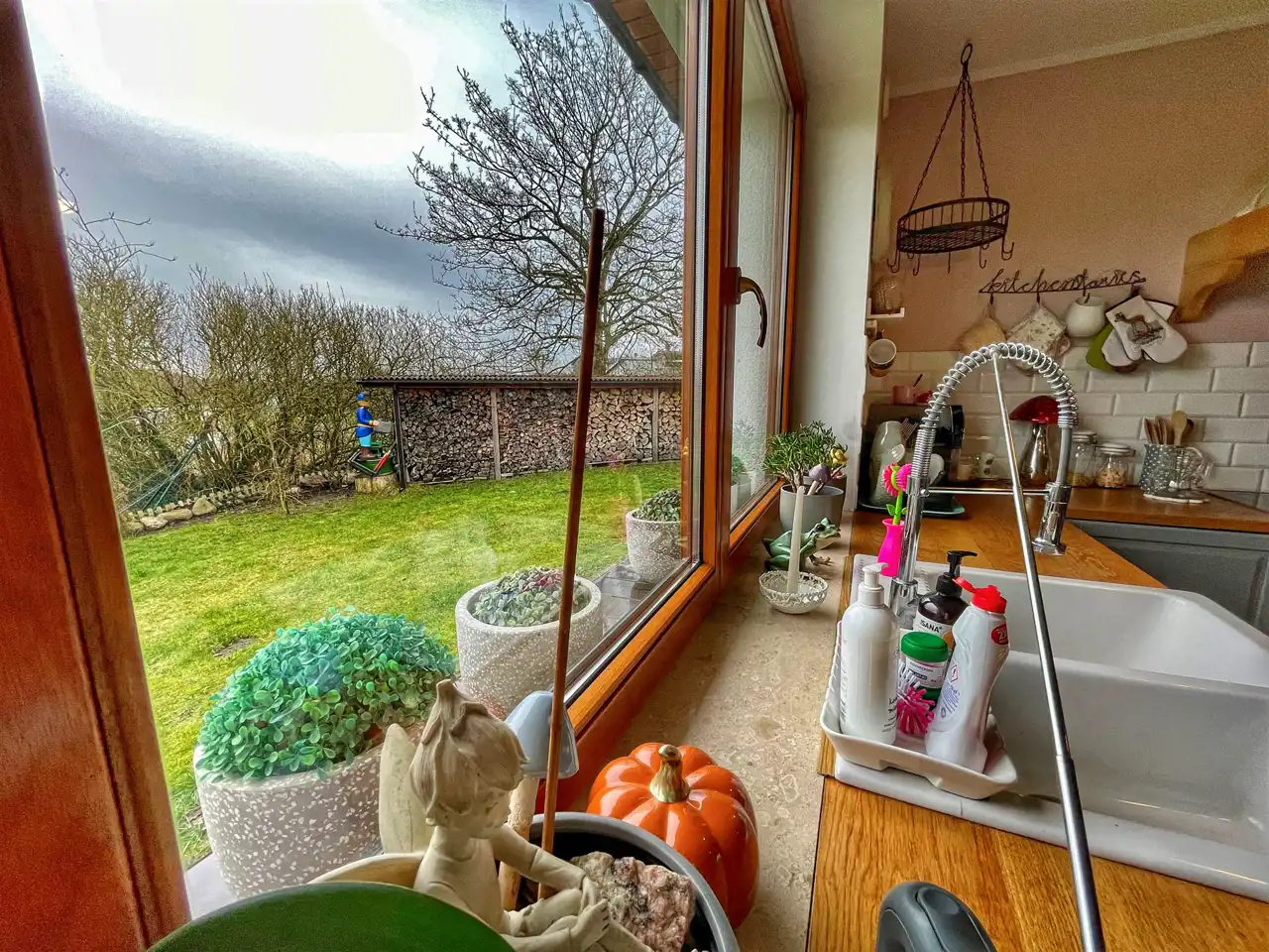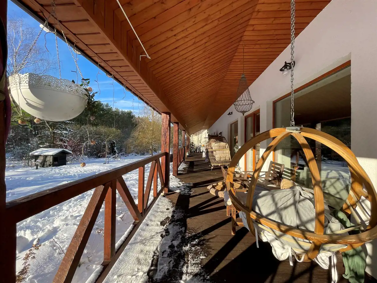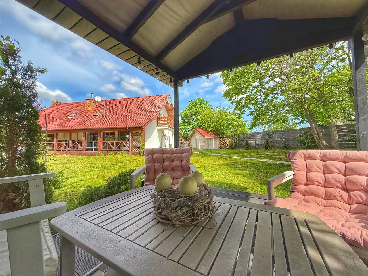 W przeważającej części domu okna wykonano z twardego drewna dębowego zapewniając trwałość, izolację termiczną oraz ponadczasową estetykę. Podłogi pokrywają deski drewniane, płytki ceramiczne lub panele. Przestronny taras również wykonano z drewna, dzięki czemu nie nagrzewa się podczas upałów. Dachówka ceramiczna pomaga zapewnić równowagę termiczną w zimie i lecie.