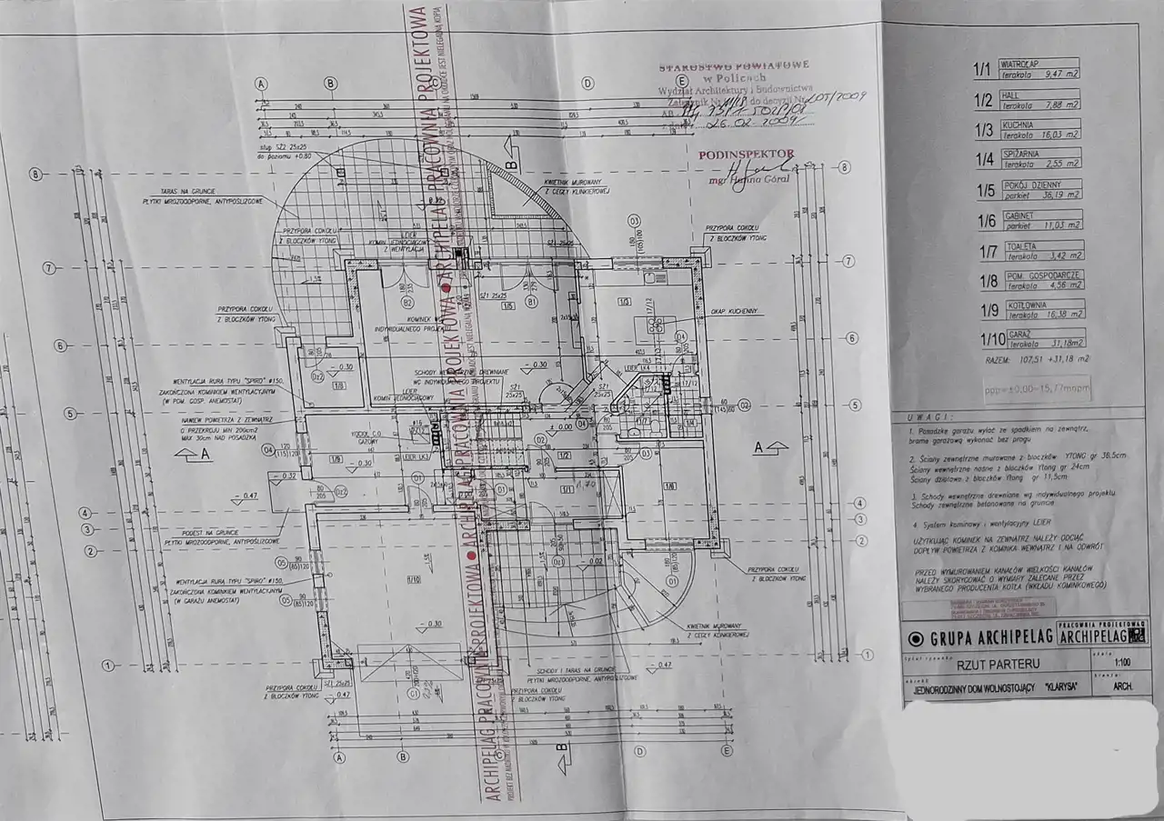 Na parterze: salon z kominkiem , kuchnia , pokój/gabinet do pracy, łazienka z prysznicem, obszerne pomieszczenie gospodarcze oraz garaż.