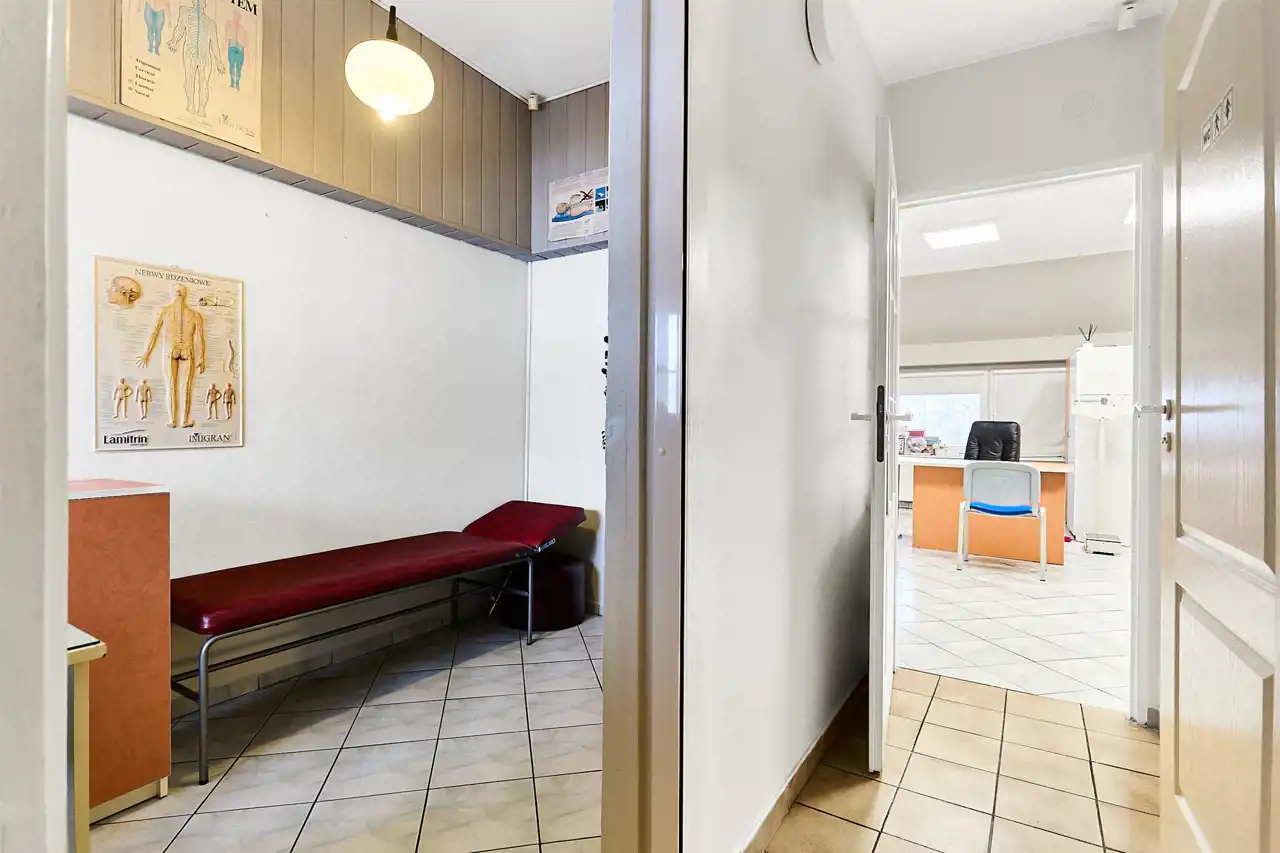 Obecnie w lokalu działa przychodnia. Układ i standard pozwalają kontynuować działalność medyczną bez większych zmian, ale nieruchomość sprawdzi się również pod inne usługi, handel czy działalność biurową.