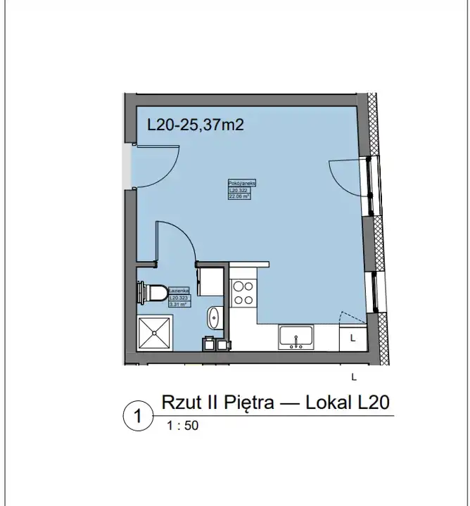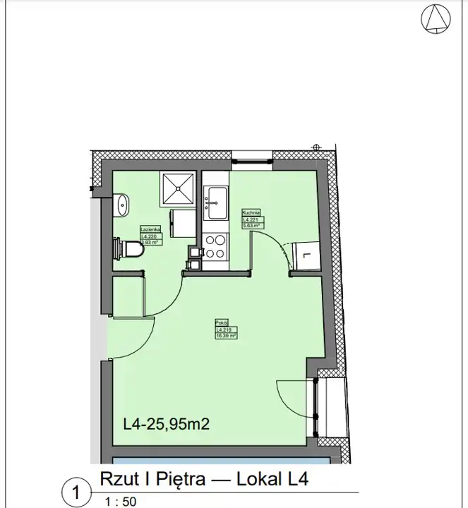 - Charakterystyka mieszkania 25.95 m2, 1 pokój