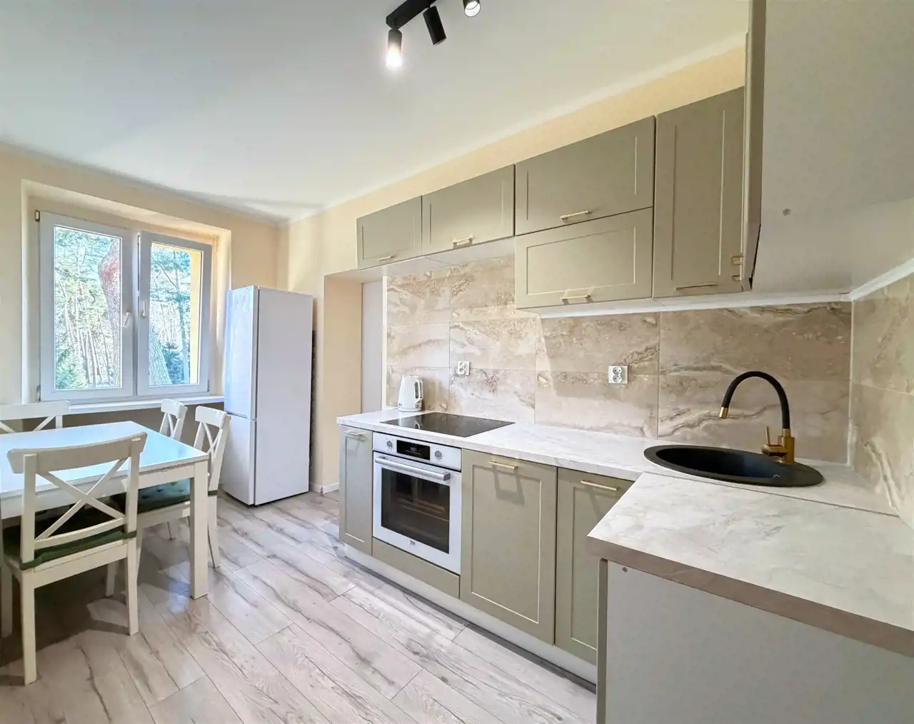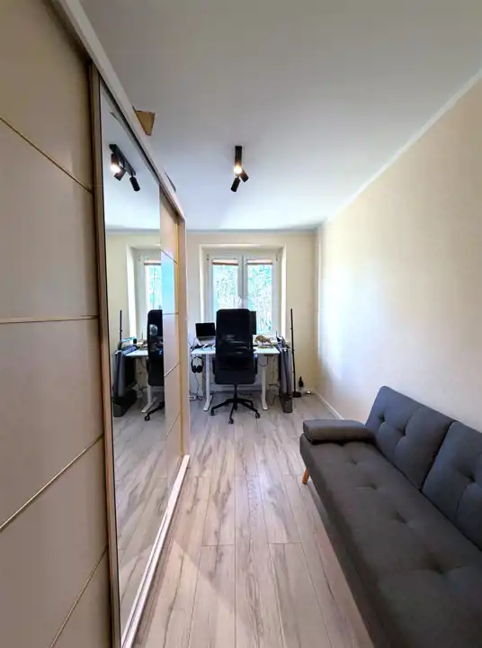 W 2025r mieszkanie przeszło gruntowny remont: zostały wymienione instalacje elektryczne oraz hydrauliczne, wygładzone i wymalowane ściany.