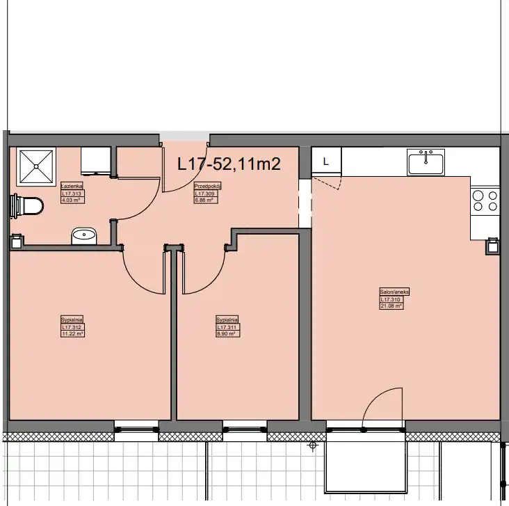 - Charakterystyka mieszkania 52.11 m2, 3 pokoje