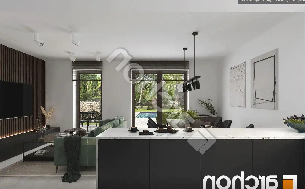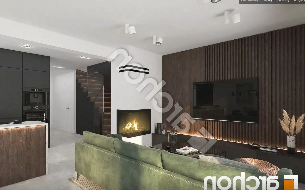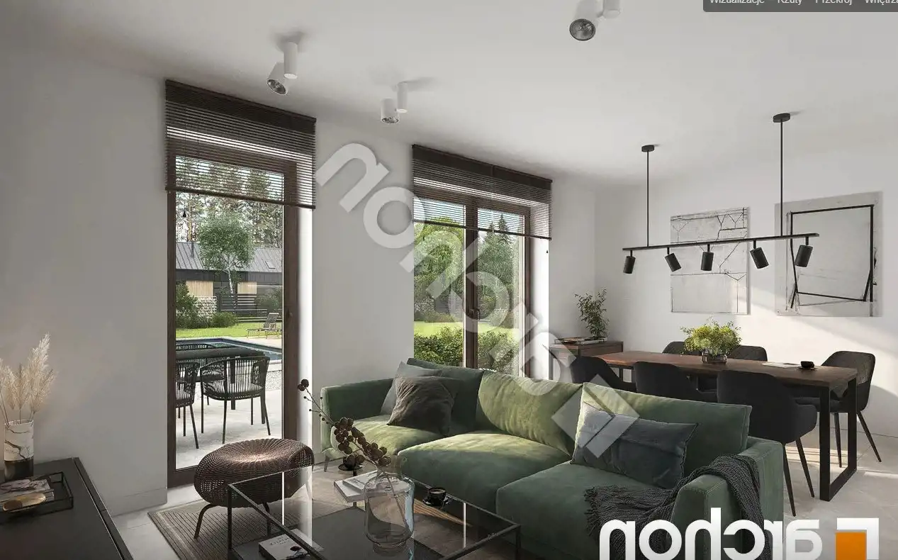 Otwarty układ strefy dziennej sprawia, że wnętrze optycznie wydaje się większe. Salon płynnie łączy się z jadalnią oraz kuchnią , a przestrzeń wypoczynkową powiększa taras. Na parterze przewidziano również łazienkę z prysznicem, z wiatrołapu dostępny jest garaż. Dobrze doświetlone poddasze to przestrzeń prywatna mieszkańców, w której zaprojektowano trzy ustawne sypialnie. Pokoje dzieci posiadają wyjścia na wspólny balkon , miejsce na wygodne biurka do nauki, a także dużą szafę . W dużej sypialni rodziców przewidziano możliwość zaaranżowania prywatnej strefy telewizyjnej, toaletki, biurka oraz pojemnych szaf lub wydzielenia garderoby. Dodatkową powierzchnię do przechowywania oferuje zlokalizowana w holu ogólnodostępna garderoba. Na piętrze znajduję się również duża i wygodna łazienka. Budynek usytuowany na działce o powierzchni 1,94 ar