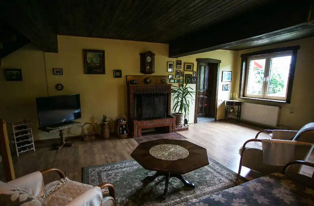 Dom z cegły, przedwojenny, po wojnie gruntownie odremontowany połączony z drewnianą stodołą krytą dachówką. Nieruchomość w dobrym stanie, nie ma wilgoci.