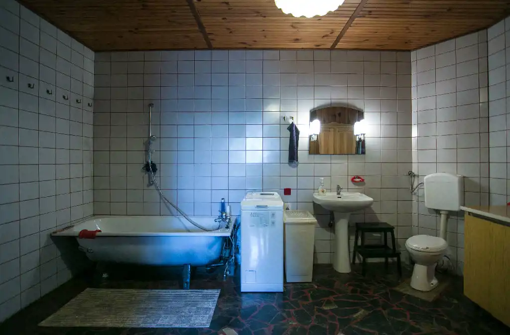 Dom ogrzewany dużym piecem znajdującym się w piwnicy /drewno, węgiel/.