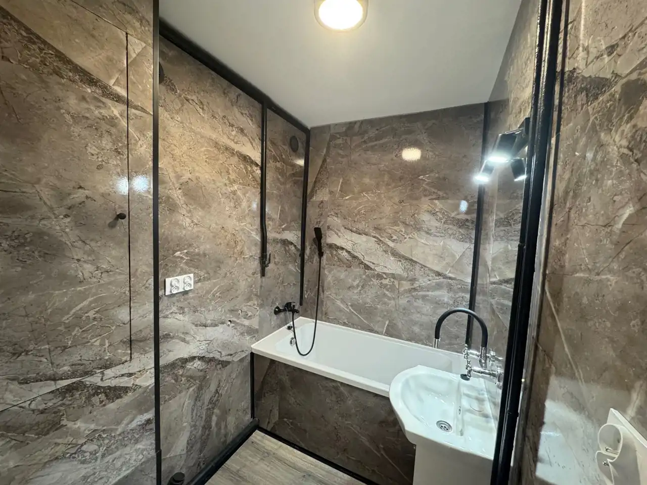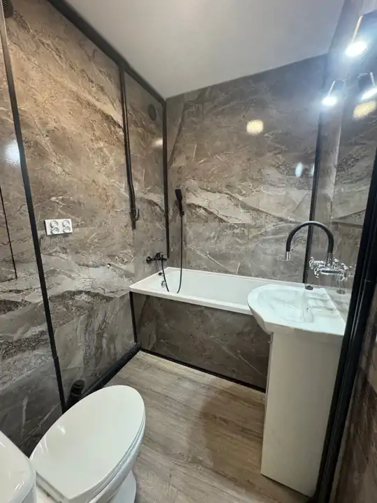 łazienka wykończona nowocześnie, z nową armaturą
