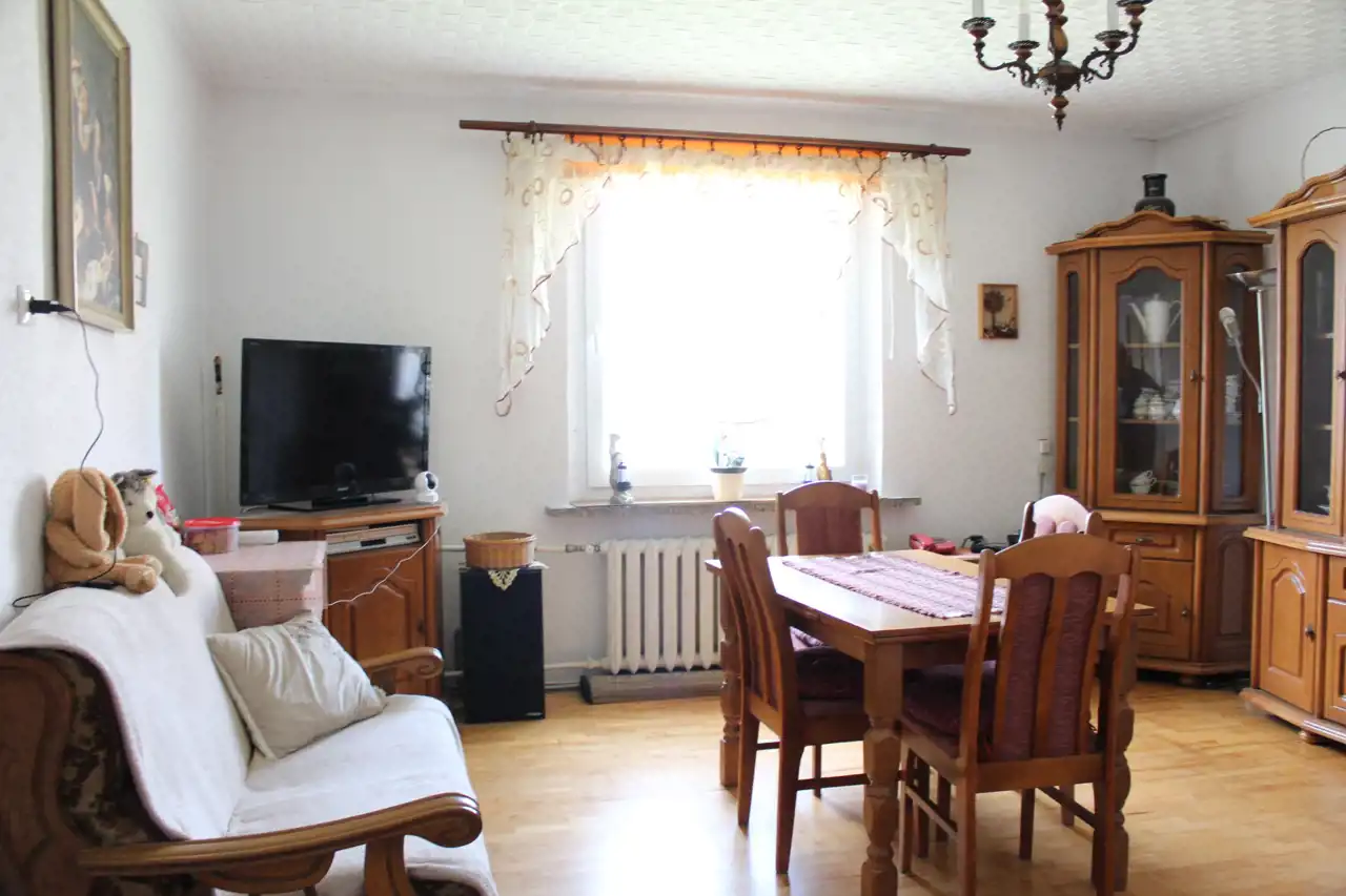 Zadbany dom z lat 60-tych (fundamenty przedwojenne) posadowiony wraz z budynkiem gospodarczym (garaż w bryle) i dodatkowym garażem blaszanym na foremnej działce o powierzchni 13 arów w miejscowości Polska Cerekiew. Dom nadaje się do zamieszkania. Wszystkie instalacje sprawne, ogrzewanie z kotła na ekogroszek, nowe pokrycie dachowe, docieplenie i elewacja. Spokojne miejsce. Cena do negocjacji.