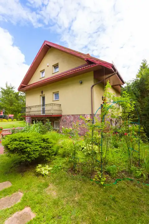 Dom jednorodzinny wykończony w podwyższonym standardzie. Budynek jest podpiwniczony.