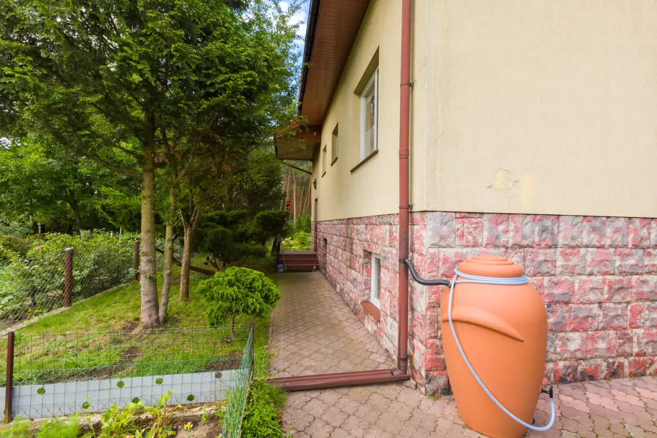 Cała działka jest ogrodzona i zagospodarowana urządzoną zielenią. Wśród drzew, krzewów i kwiatów mamy altanę, miejsce do grillowania oraz mały ogródek.