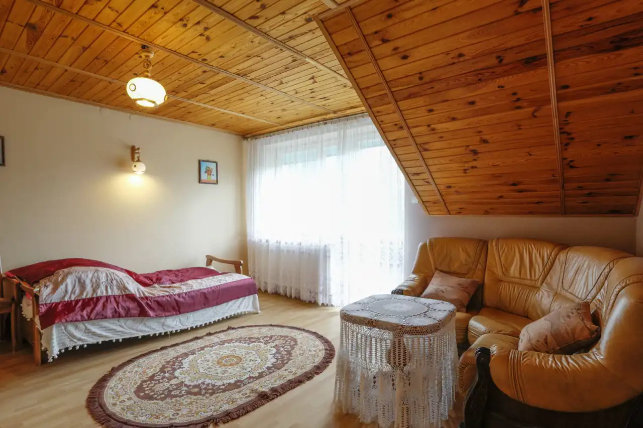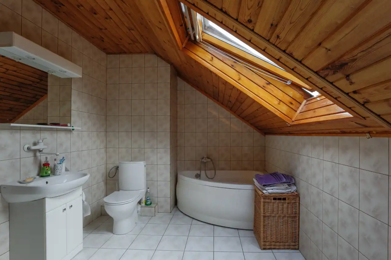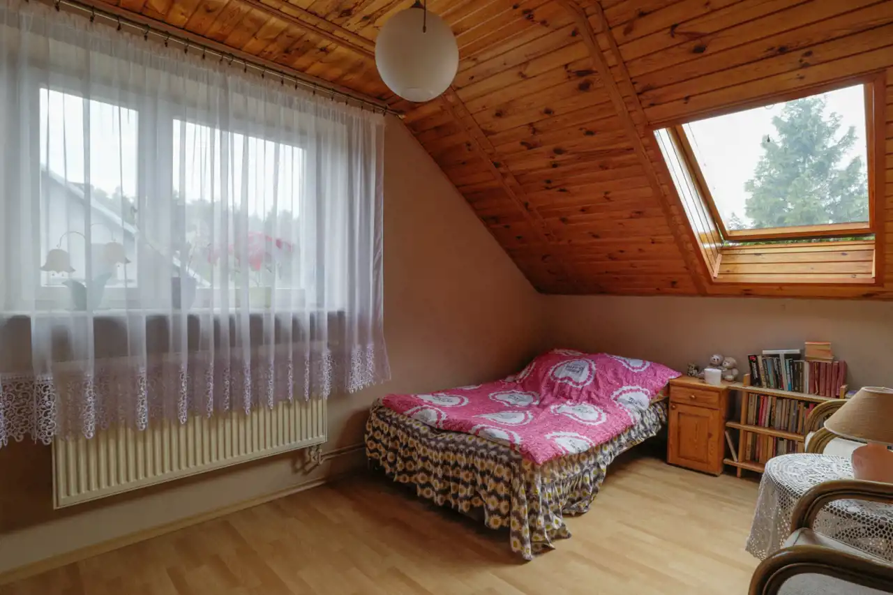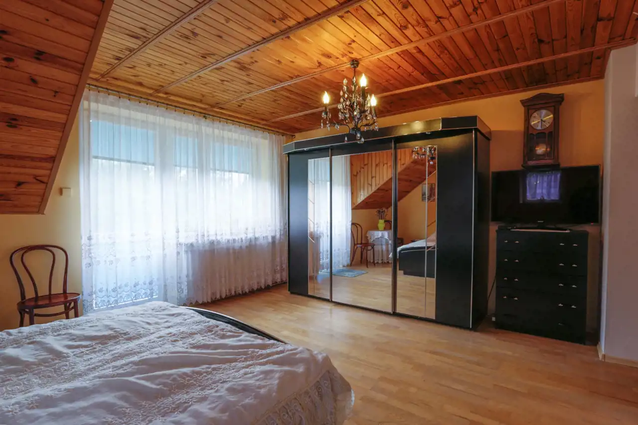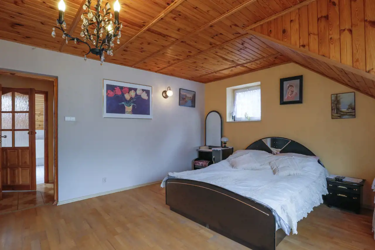 Poddasze to trzy sypialnie (dwie z balkonem) oraz duża łazienka.