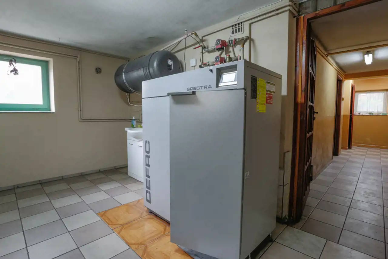 W piwnicy znajduje się garaż jednostanowiskowy, kotłownia (nowoczesny piec na pellet DEFRO SPECTRA), pomieszczenie gospodarcze (rowerowania) oraz pomieszczenie na skład opału.