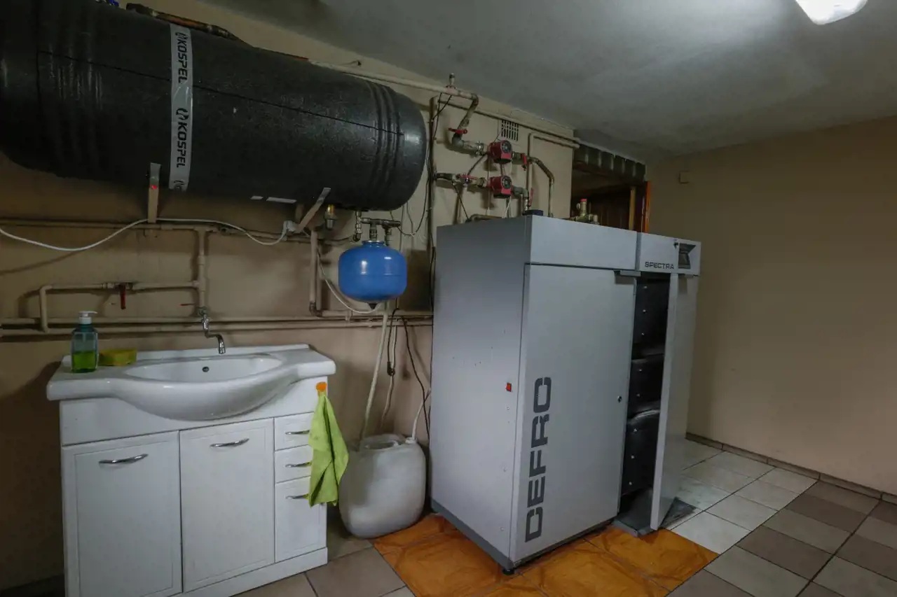 Ogrzewanie domu zasilane jest nowoczesnym ekologicznym piecem na pellet (DEFRO SPECTRA). Zapewniony zapas opału na przyszły sezon grzewczy.