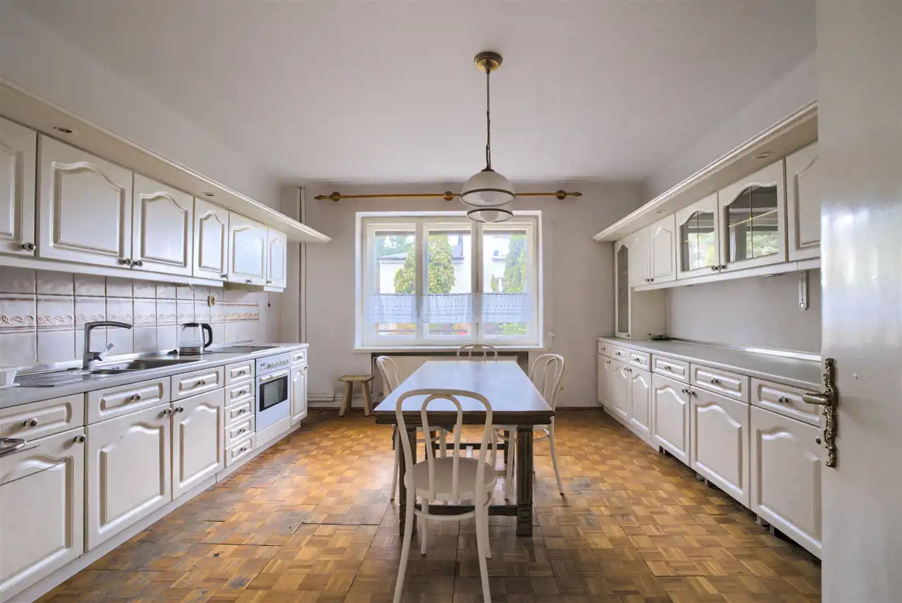 - bardzo duża, jasna kuchnia z zabudową,