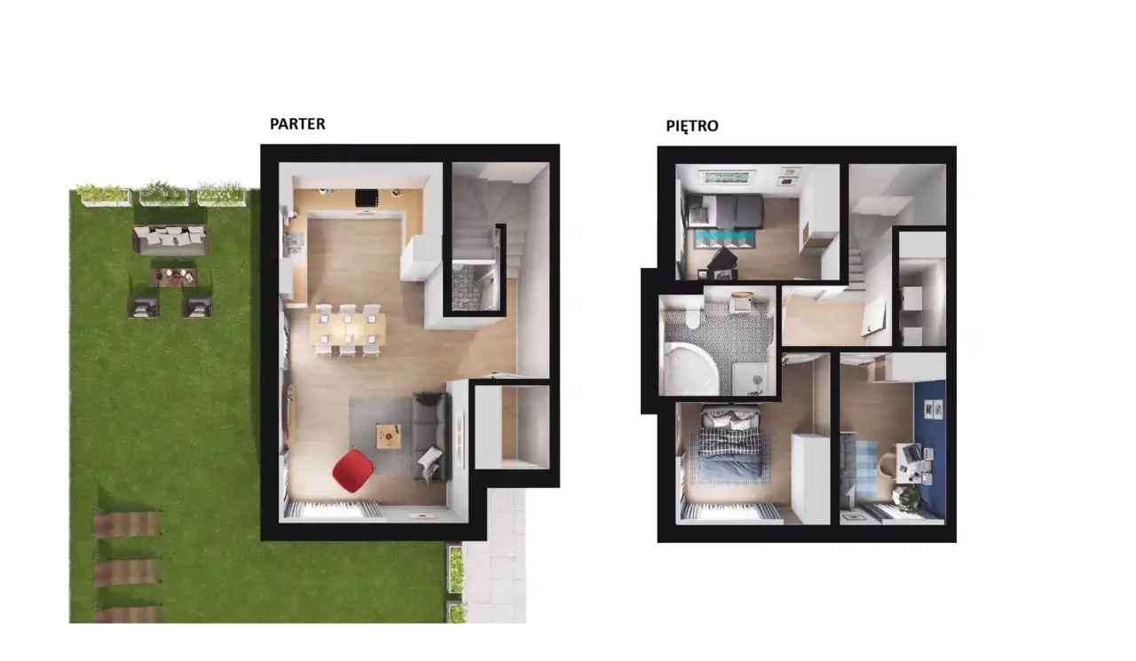 Mieszkanie dwupoziomowe z przynależnym ogródkiem o powierzchni ok. 80 m2.