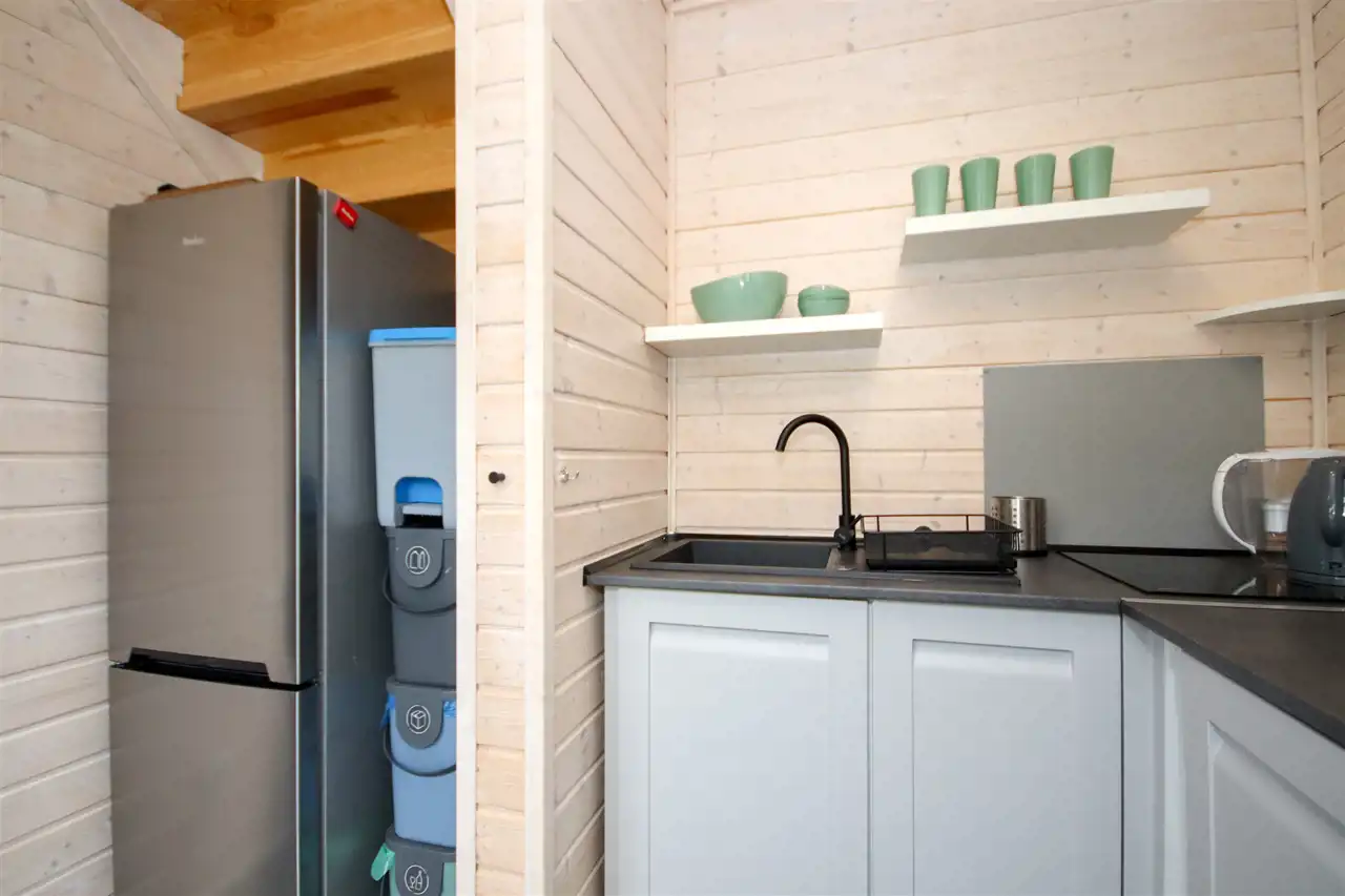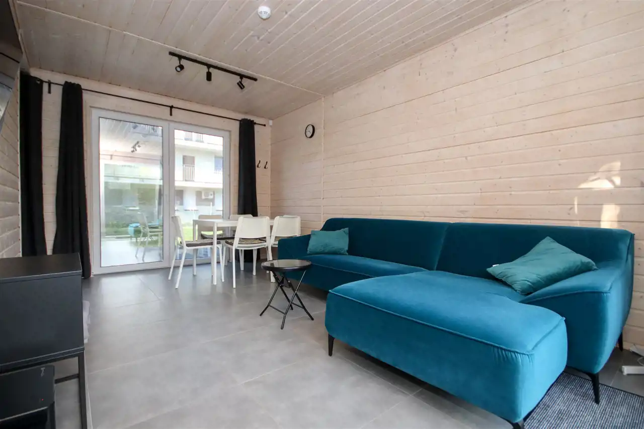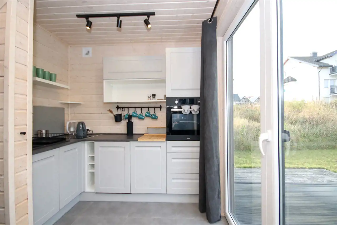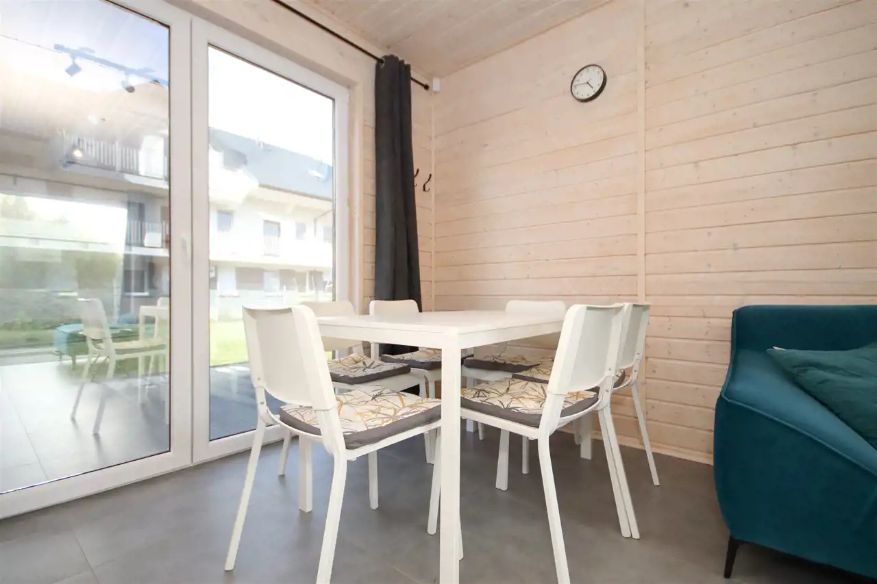 W każdym domku na parterze znajduje się przestronny pokój dzienny z wyjściem na taras. Ustawny pokój wyposażony w wygodną sofę, szafkę, telewizor i duży stół z krzesłami, przy którym zmieści się cała rodzina. Kuchnia wyposażona w wysokiej jakości sprzęt AGD i RTV m.in. lodówkę, zmywarkę, piekarnik, płytę indukcyjną. Nowoczesna łazienka, w której znajdziemy prysznic, umywalkę, lustro oraz toaletę. Na piętrze znajdują się dwa pokoje, w których znajdziemy dwuosobowe łóżka, kanapy a w jednym z domków piętrowe łóżko dla dzieci. Idealna przestrzeń na wypoczynek w ciągu całego roku. Nieruchomość sprzedawana z całym wyposażeniem.