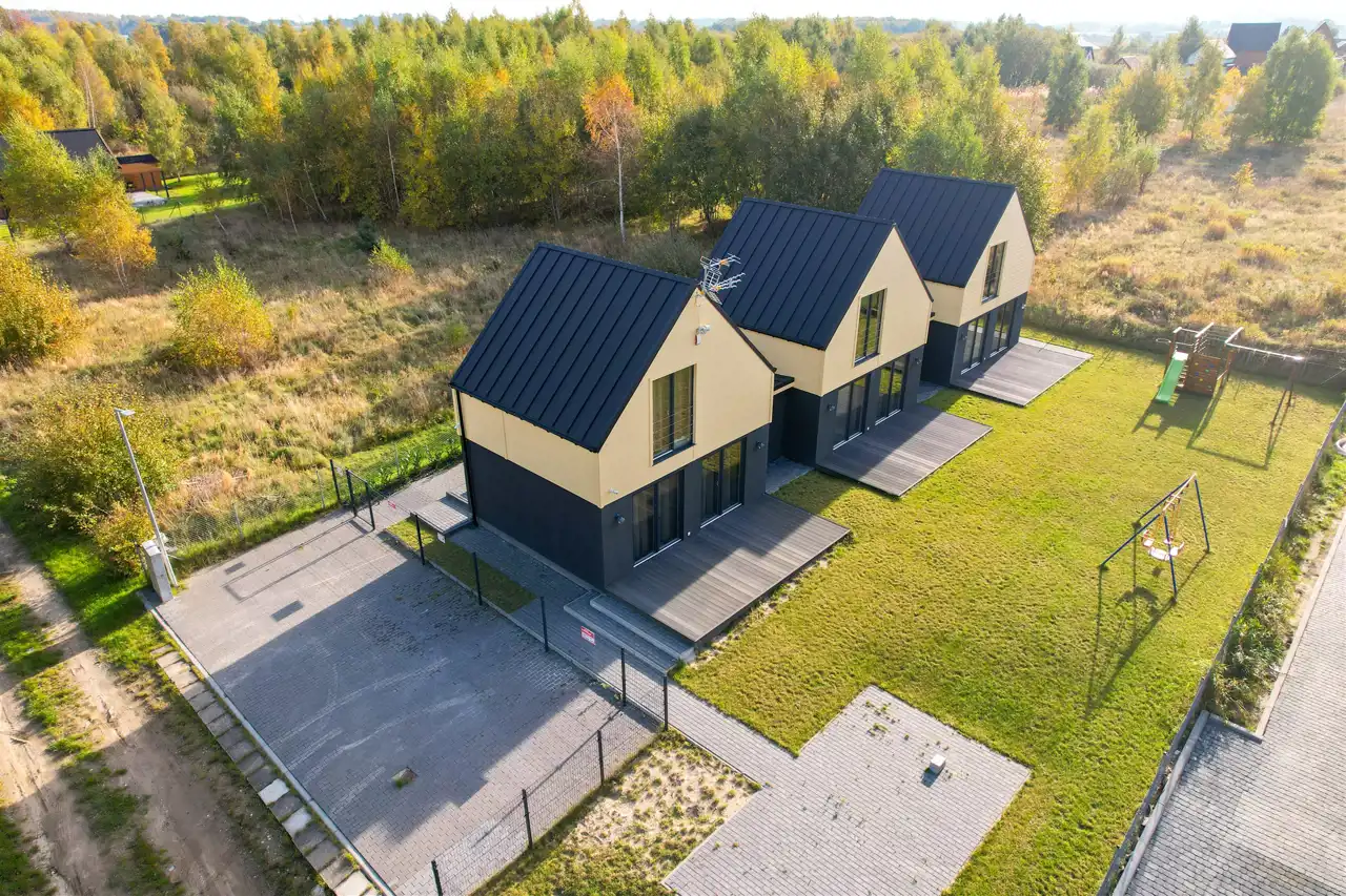 OFERUJEMY NA SPRZEDAŻ 3 NOWOCZESNE DOMKI CAŁOROCZNE POŁOŻONE NA ZAGOSPODAROWANEJ DZIAŁCE O POWIERZCHNI 752 M2 W NADMORSKIEJ MIEJSCOWOŚCI RUSINOWO, W GMINIE POSTOMINO!