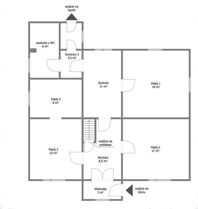 - cztery pokoje (19m2; 17m2; 13m2 oraz 8m2),
