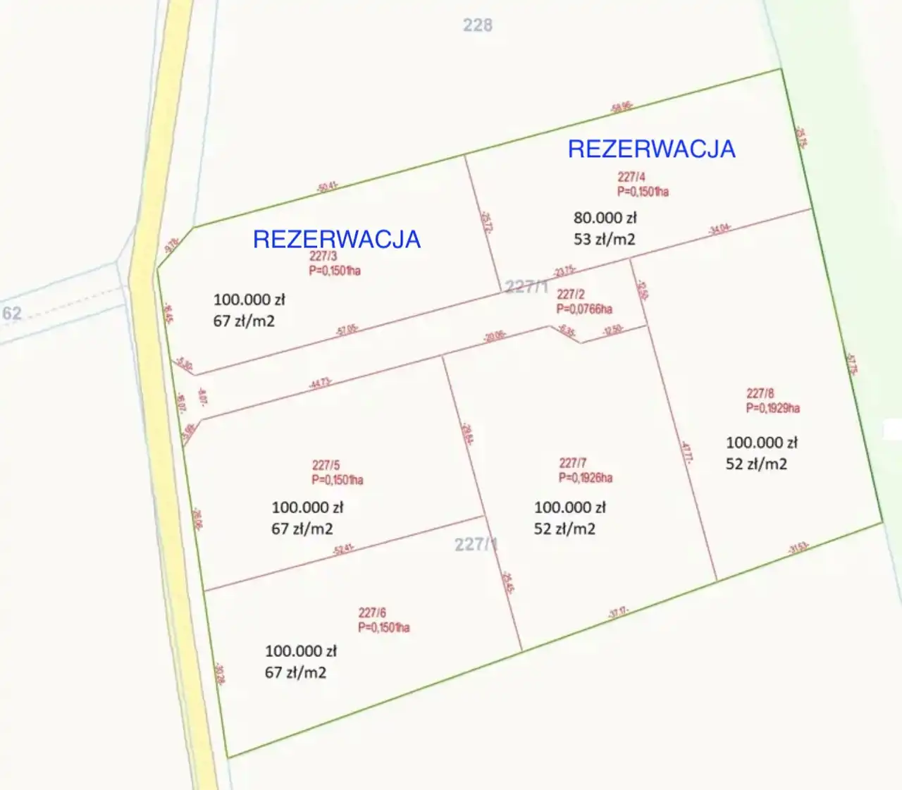 numer ewidencyjny 227/1 - w trakcie podziału zgodnie z mapą podziałową.