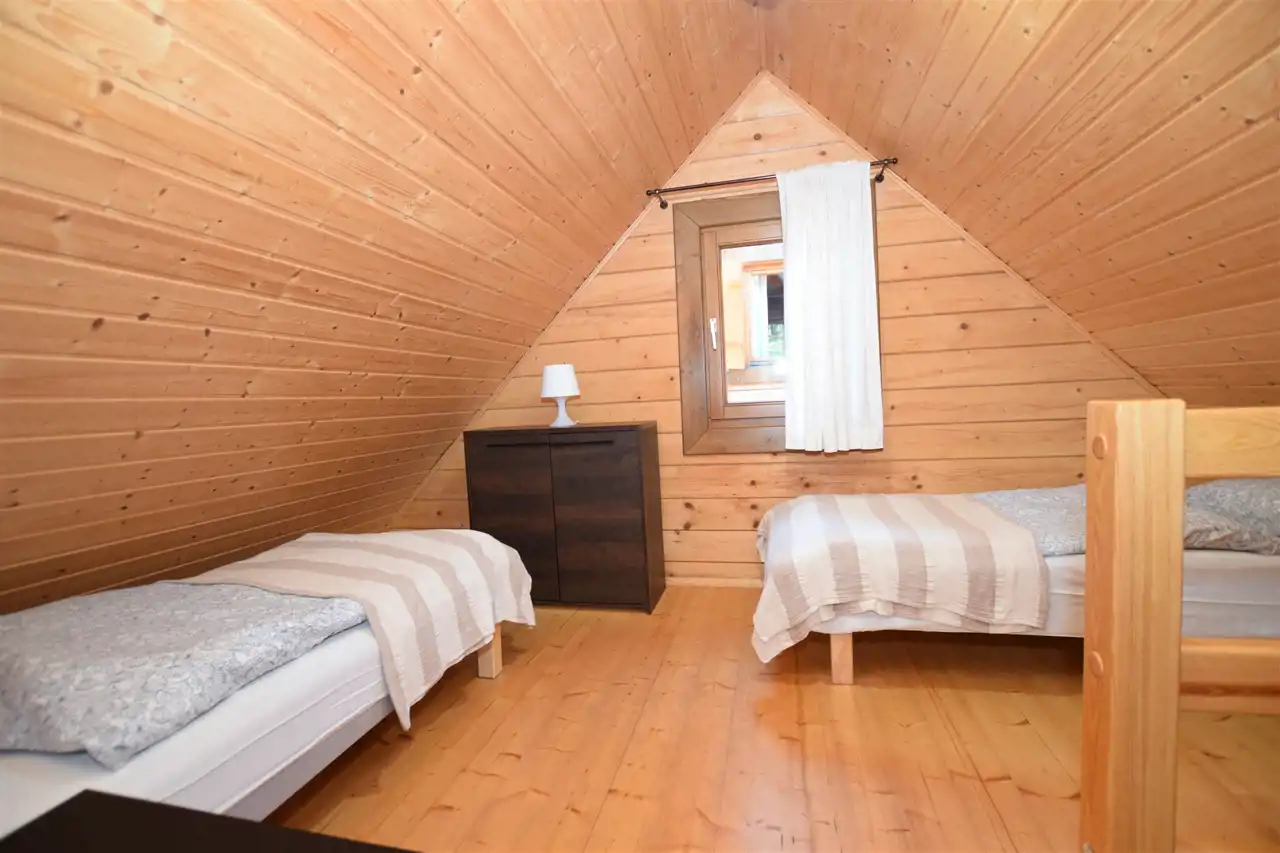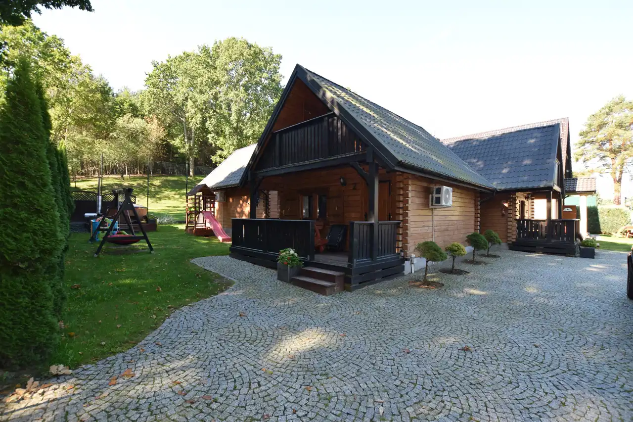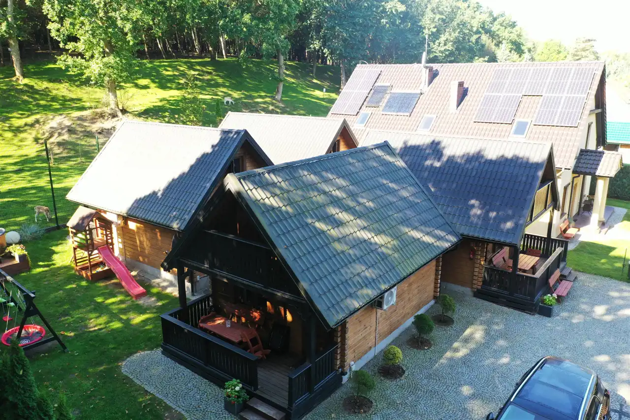 - 4 drewniane domki wypoczynkowe o powierzchni 46m² każdy
