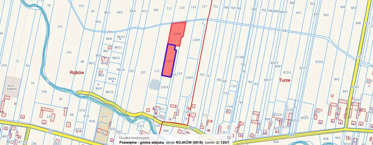 Działka 120/7 posiada aktualne warunki zabudowy na budowę domu jednorodzinnego wolno stojącego.