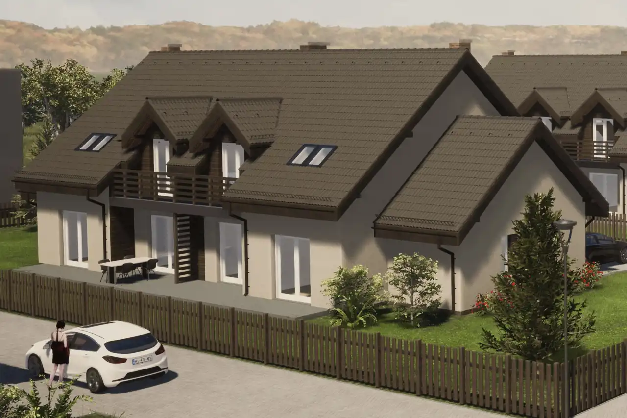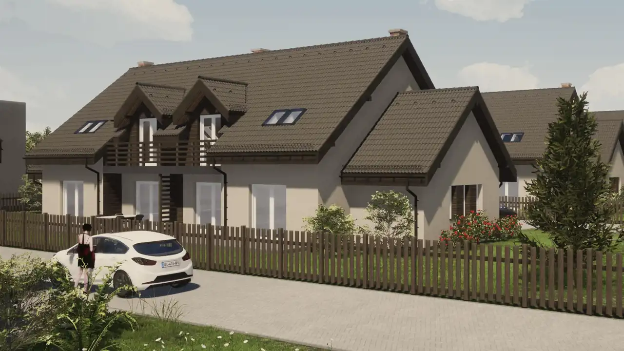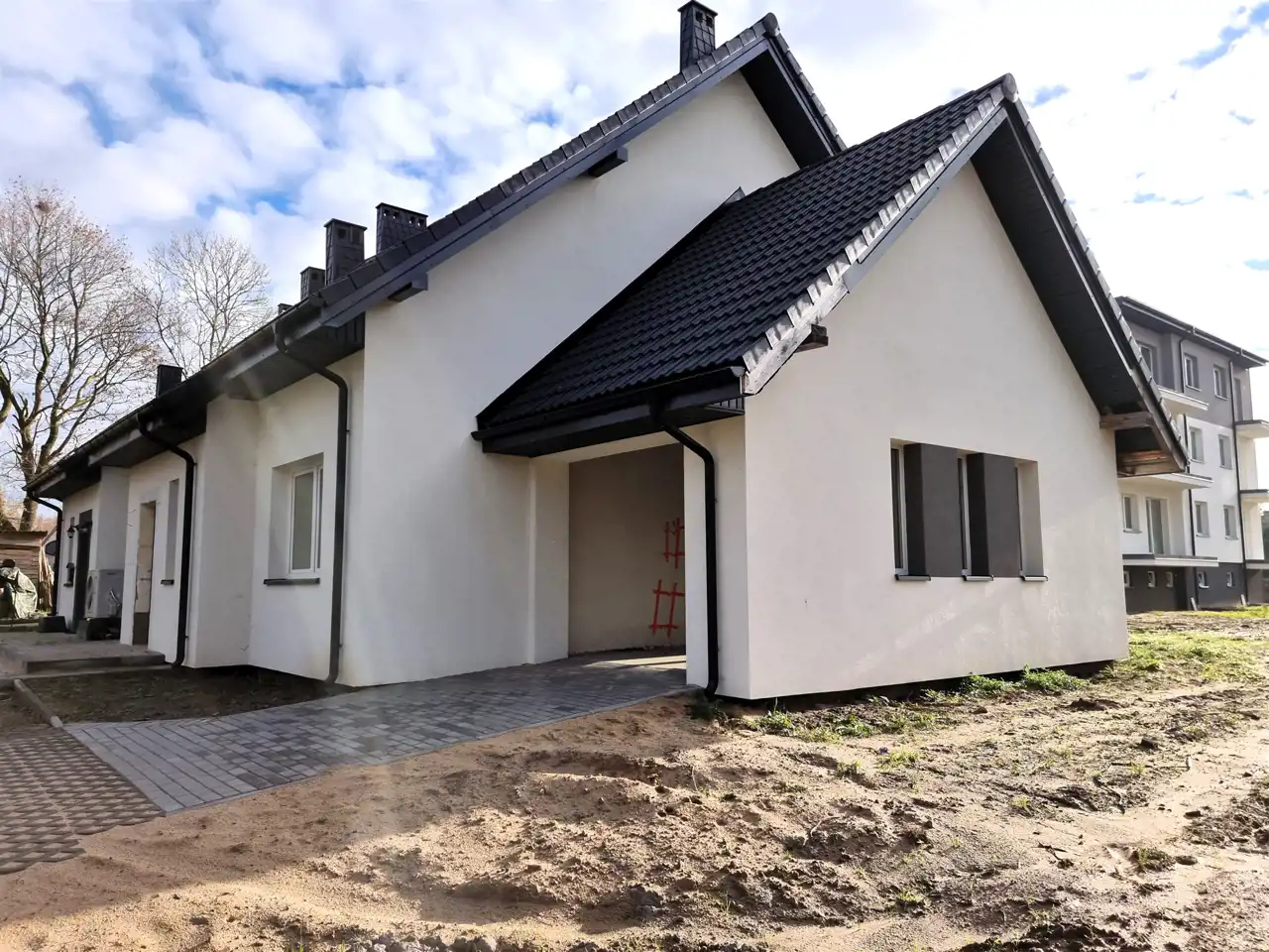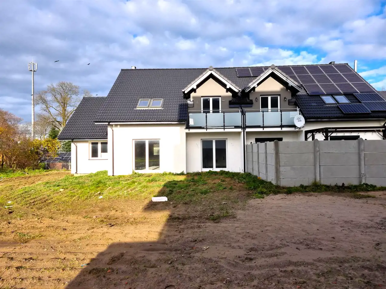 Dom w zabudowie bliźniaczej z garażem, z użytkowym poddaszem, niepodpiwniczony o powierzchni użytkowej 142,09m2 usytuowany w gminnej miejscowości Potęgowo (20km do Lęborka, 30 km do Słupska). Nieruchomość zlokalizowana jest w zacisznym osiedlu domków jednorodzinnych, jednocześnie blisko centrum, na działce o powierzchni 600m2. Parter domu o powierzchni 74,83m2 składa się z garażu, wiatrołapu, holu, przestronnego salonu, kuchni z jadalnią, pokoju oraz łazienki z WC. Na poddaszu o powierzchni 67,26m2 natomiast usytuowany będzie korytarz, trzy pokoje, garderoba oraz łazienka z WC. W budynku zostanie wykończona elewacja, ściany pokryte tynkiem cementowo-wapiennym, poddasze ocieplone wełną, cementowe posadzki, okna PCV wraz z parapetami zewnętrznymi oraz drzwi zewnętrzne. Centralne ogrzewanie z oddzielnym wymiennikiem ciepła. Ponadto nieruchomość będzie wyposażona we wszystkie media dostępne w miejscowości, tj: wodę, prąd, kanalizację. Budynek posiada optymalny rozkład pomieszczeń, jednocześnie na etapie budowy istnieje możliwość aranżacji , dostosowując w zależności od kreatywności i potrzeby klienta. W pobliżu nieruchomości znajdują się sklepy, Urząd Gminy, szkoła, przedszkole, stacja PKP. Całość prezentuje się bardzo dobrze. Ze względu na położenie (cicha, spokojna okolica, jednocześnie blisko do centrum) oraz standard wykończenia oferta jest godna polecenia!