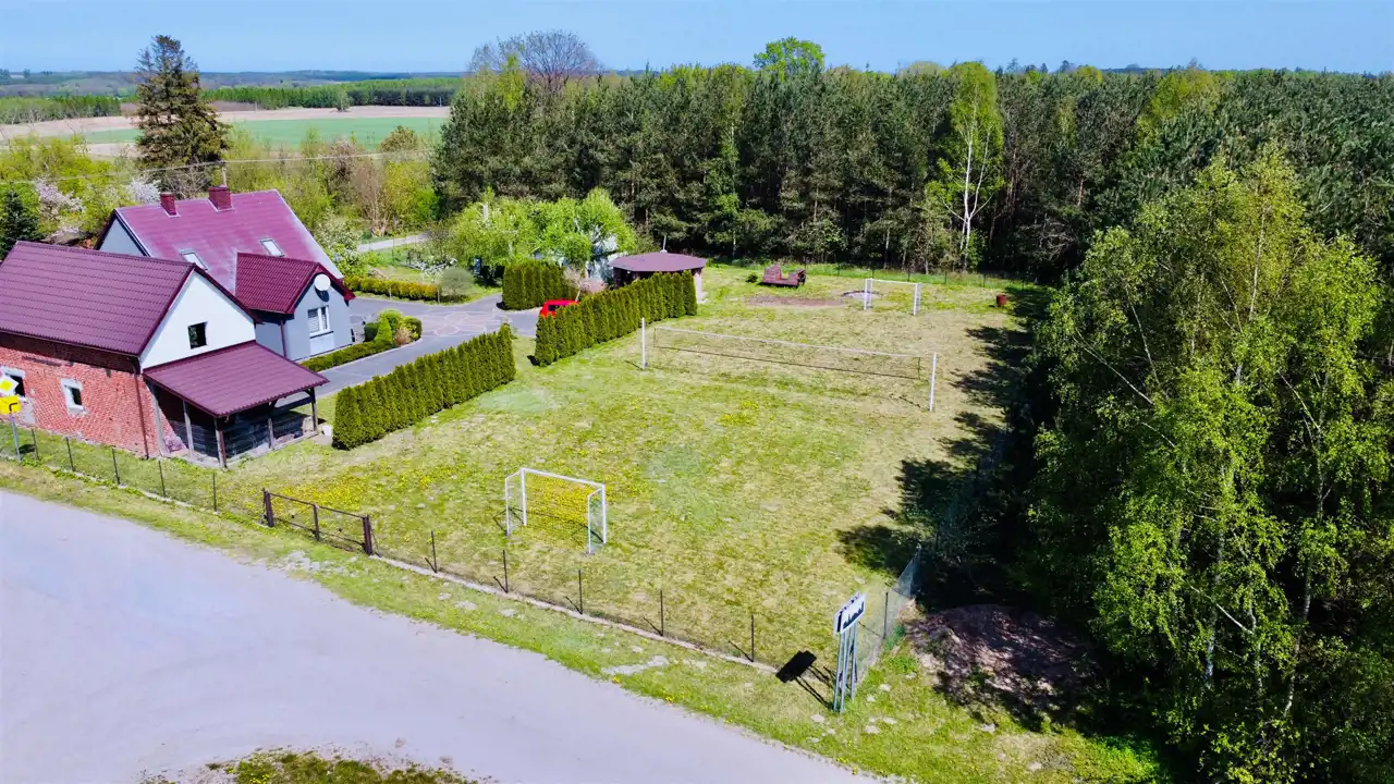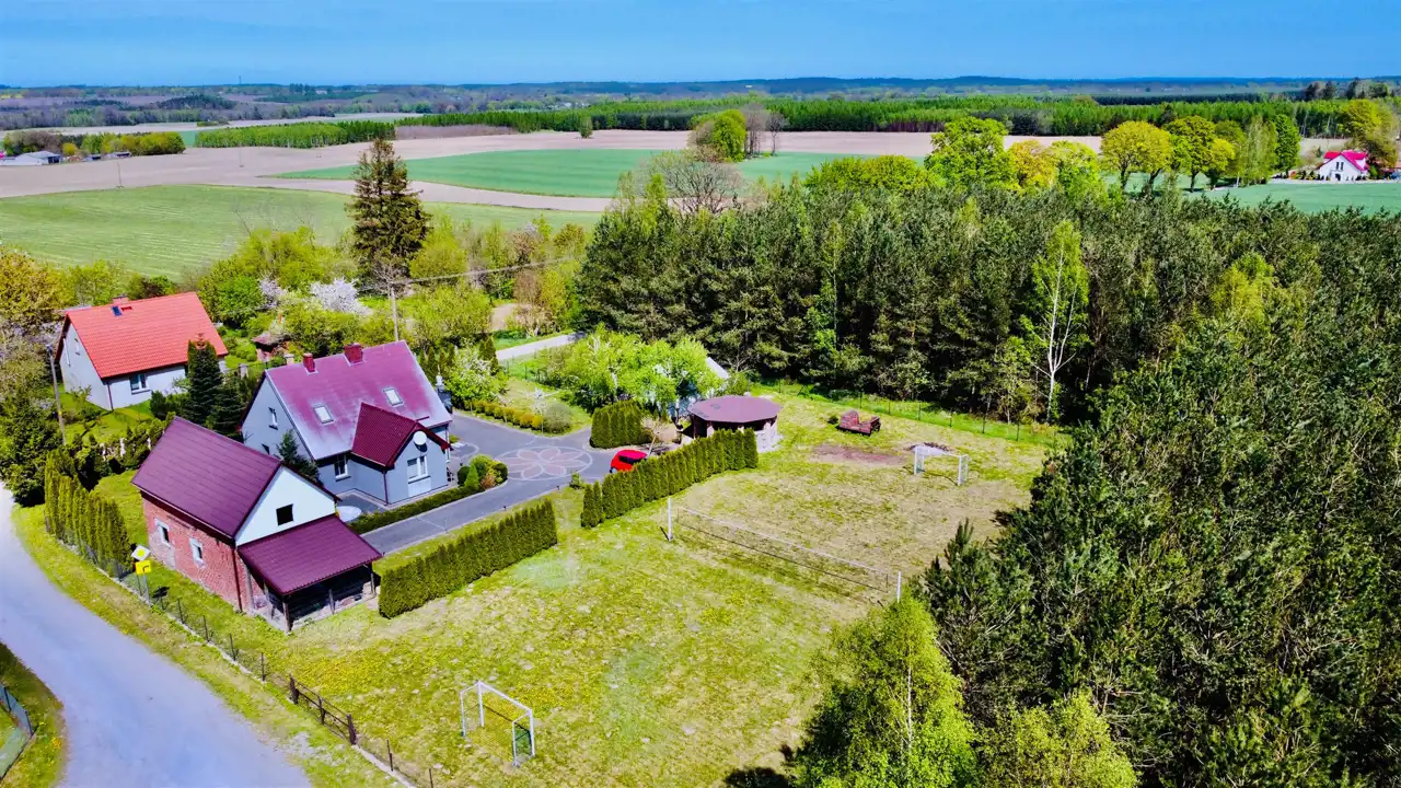 Zachęcamy do zapoznania się z naszą wyjątkową ofertą – przestronnym i urokliwym domem wolnostojącym, położonym w idyllicznej, zacisznej okolicy miejscowości Radosław, w gminie Potęgowo. Ta piękna nieruchomość, zlokalizowana na imponującej działce o powierzchni 2495 m², jest otoczona dodatkowo malowniczym, prywatnym lasem, który rozpościera się na sąsiedniej działce o wielkości 5296 m² – obie działki są wliczone w cenę sprzedaży i oferują nieograniczone możliwości dla miłośników natury i przestrzeni.