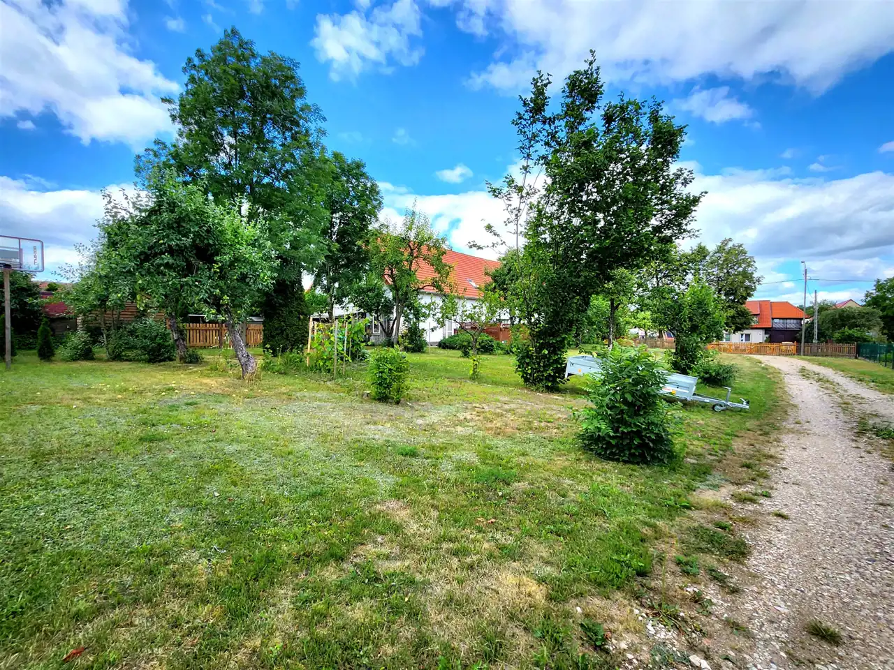 - Media Woda: wodociąg; Kanalizacja: w ulicy; Prąd: na sąsiedniej działce; Gaz: w ulicy