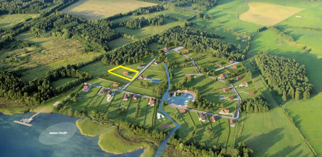 Osiedle składa się z 49 działek, z czego 16 posiada bezpośredni dostęp do jeziora Dargin.
