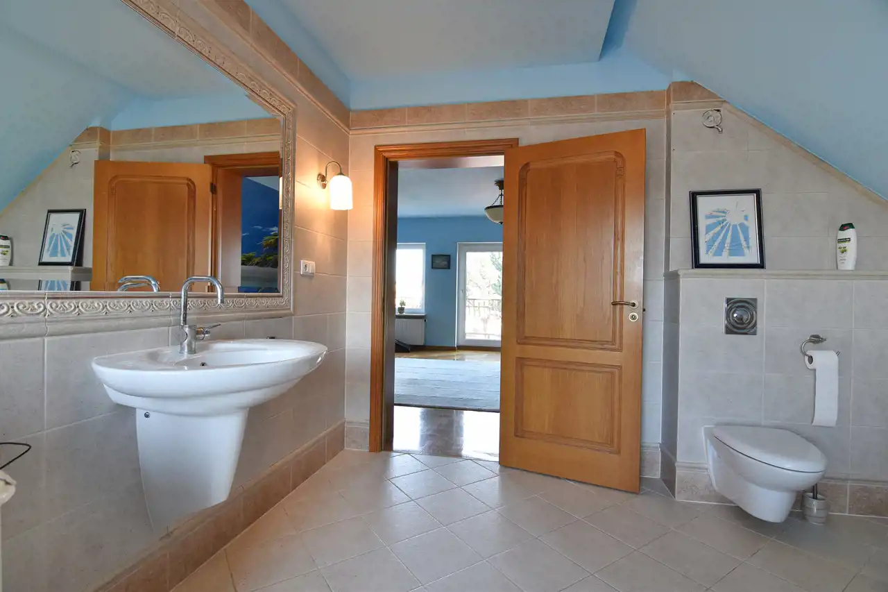 - Ogrzewanie podłogowe: pokój rekreacyjny, kuchnia, łazienki, pomieszczenie gospodarcze.