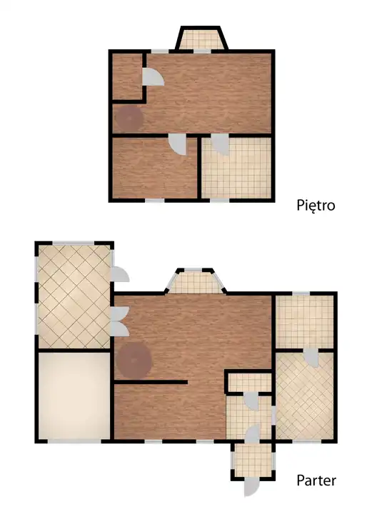Z kolei na piętrze są obecnie zlokalizowane 2 sypialnie, również z możliwością swobodnego podziału na 3.