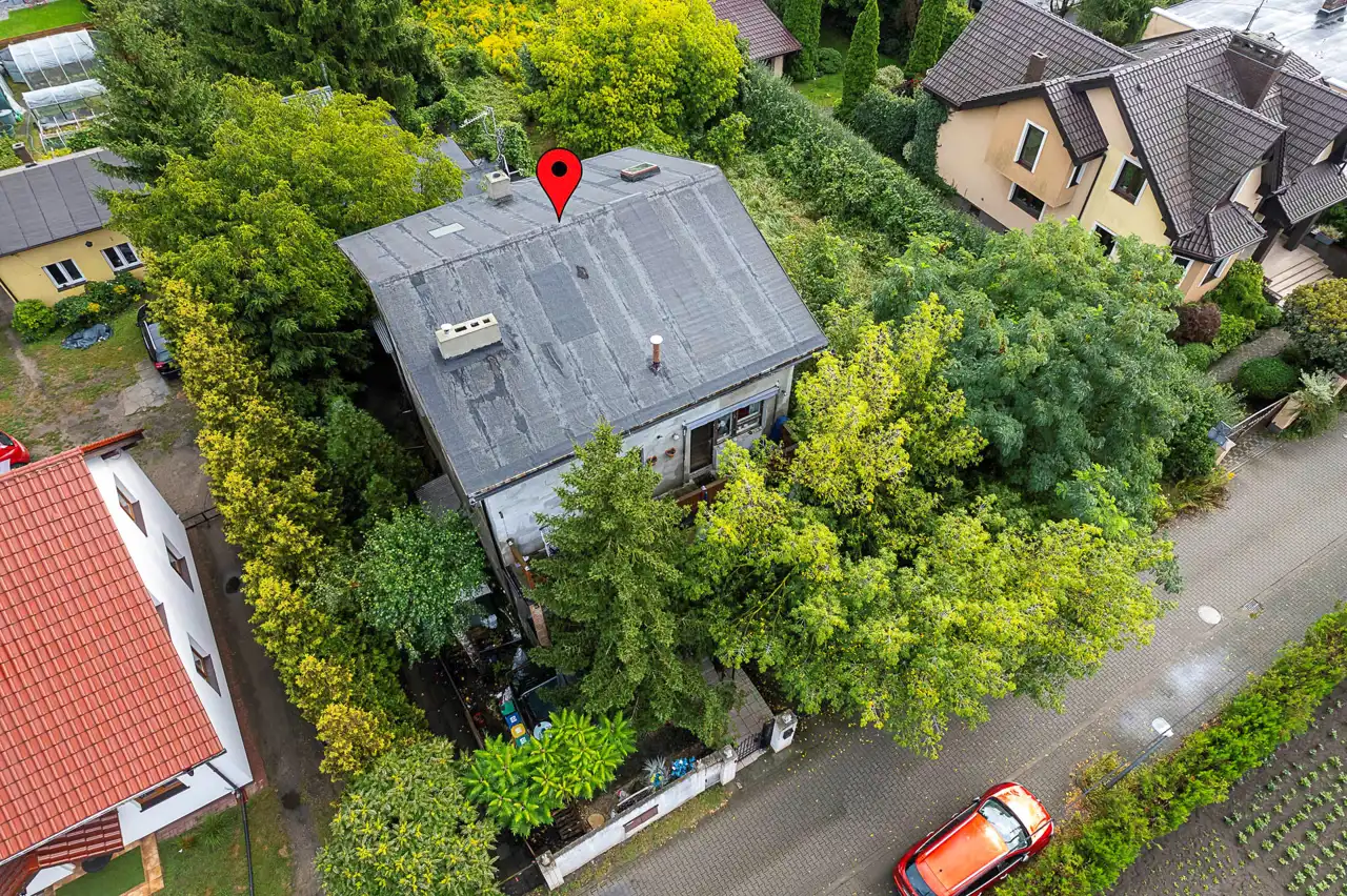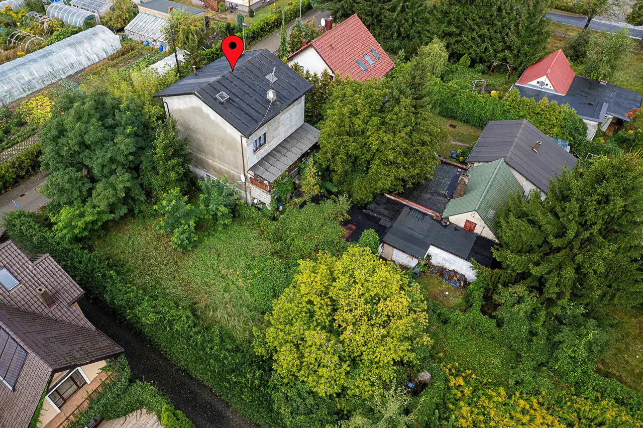 Na działce znajduje się domek parterowy o powierzchni około 100 m2 (do remontu lub wyburzenia).