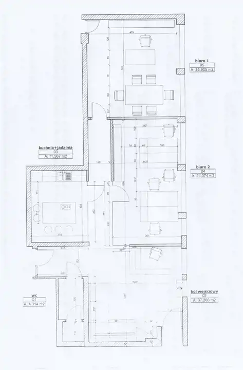 - przestronny hol (37,26 m²) – idealny na recepcję, poczekalnię lub open space