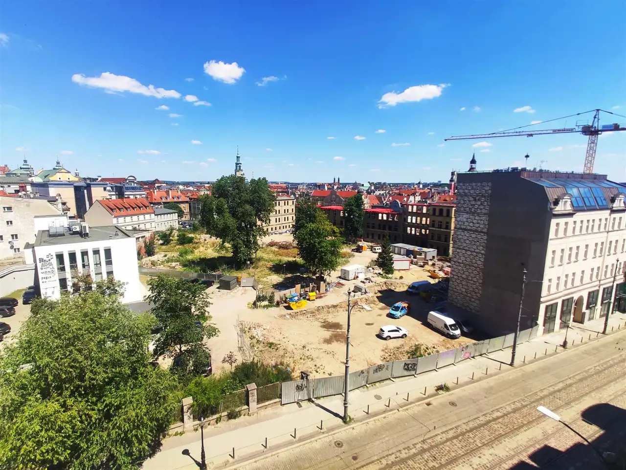 Okna wychodzące głównie na północ i południe, widok na budynki i panoramę miasta wraz z widokiem na Ratusz.