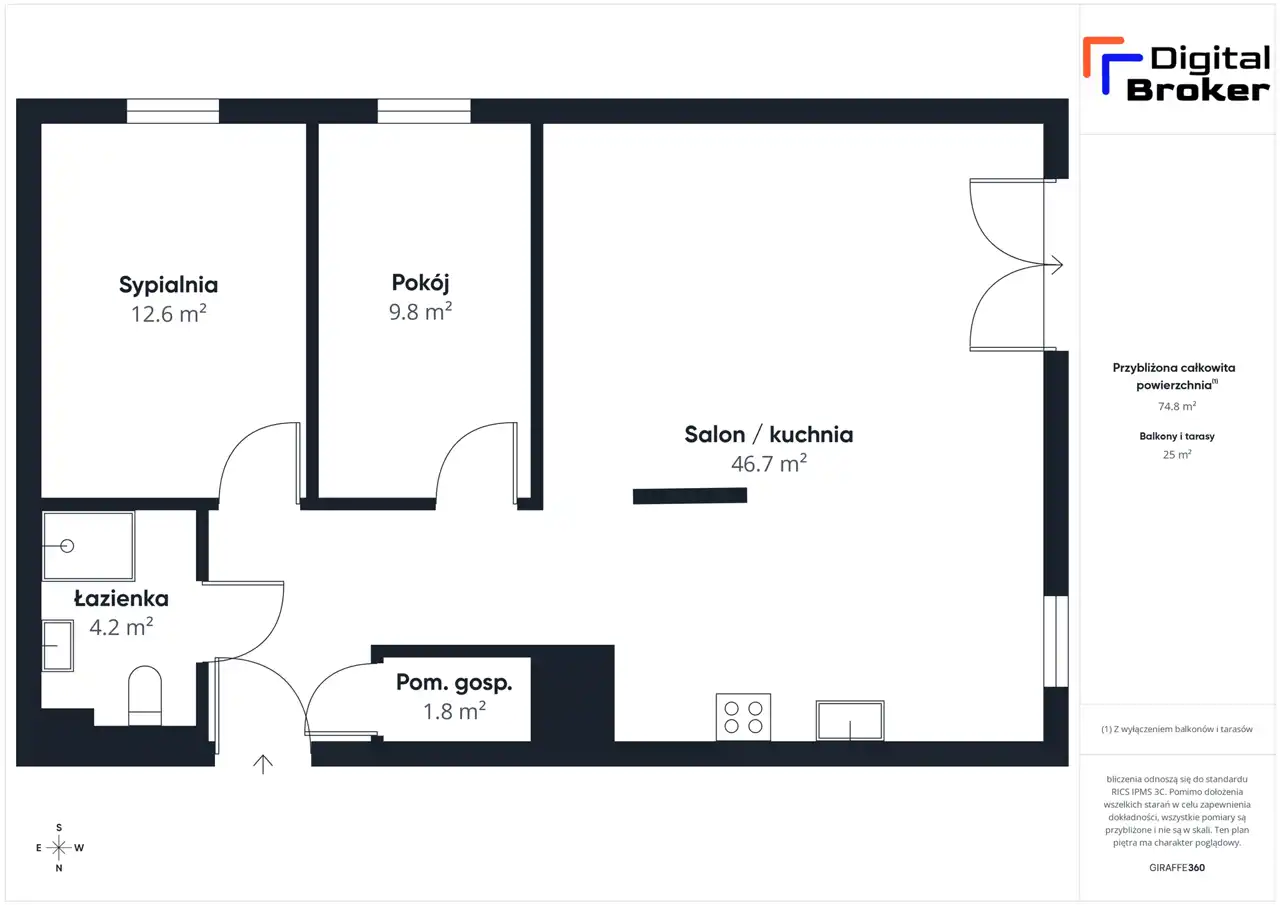 - Charakterystyka mieszkania 74.78 m2, 3 pokoje
