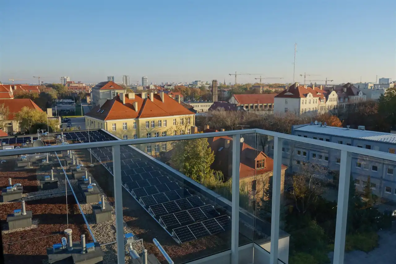 Wygodna ścieżka rowerowa wzdłuż Grunwaldzkiej wyprowadzi Was tak do pracy i nauki w centrum jak i w kierunku terenów rekreacyjnych Jeziora Rusałka. Z budynku rzut beretem do parku Wilsona oraz parku Kasprowicza przy Arenie i zlokalizowanego tu basenu odkrytego.