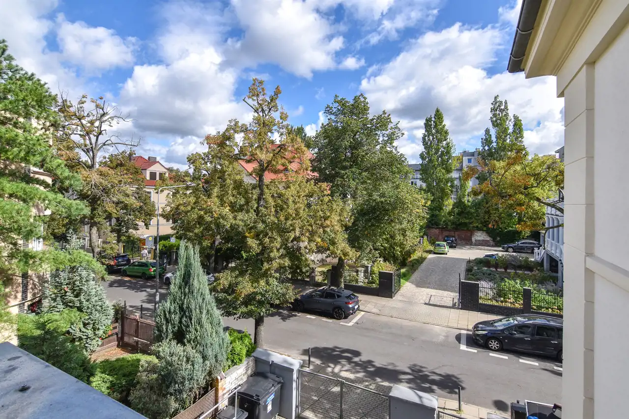 Elegancka willa miejska zyskała niedawno nową elewację, co zapewniło jej estetyczny i nowoczesny wygląd. Jest to doskonała propozycja dla osób szukających przestronnych wnętrz, które łączą komfort życia w prestiżowej lokalizacji z funkcjonalnością. Dzięki swojemu położeniu i układowi nieruchomość idealnie nadaje się również na siedzibę firmy lub kancelarii, co czyni ją bardzo atrakcyjną ofertą dla przedsiębiorców.