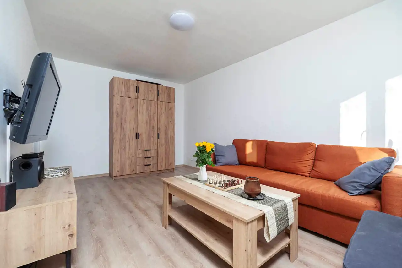 Cena mieszkania nie obejmuje wyposażenia pokoju widocznego na zdjęciach, lodówki oraz pralki.