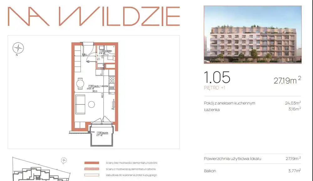 - Charakterystyka mieszkania 27.19 m2, 1 pokój