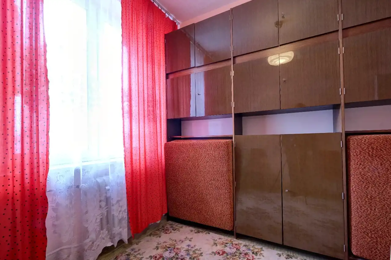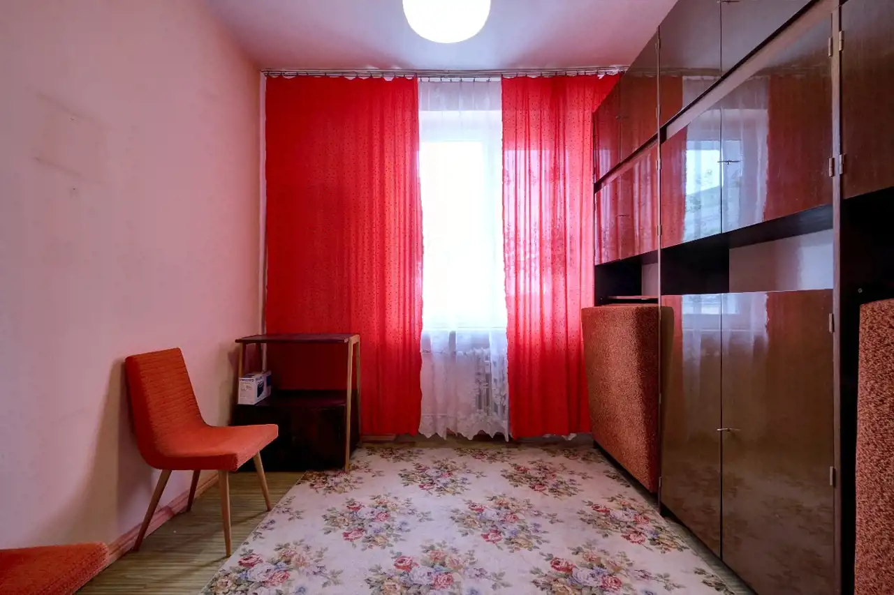 Podłogi: deski obite linoleum w pokojach, korytarzu i w kuchni, oraz płytki łazience, jak na zdjęciach.