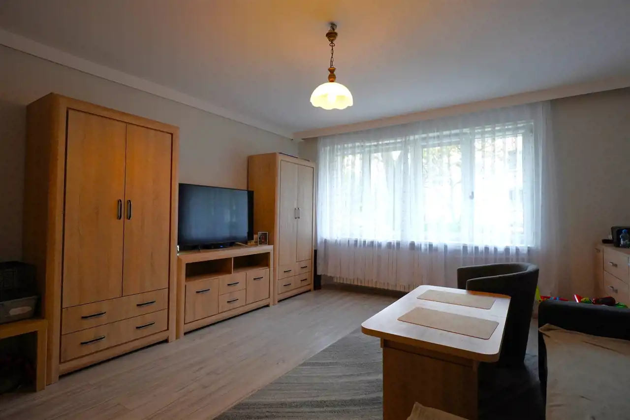 - salon z dużym podwójnym oknem 22 m2.