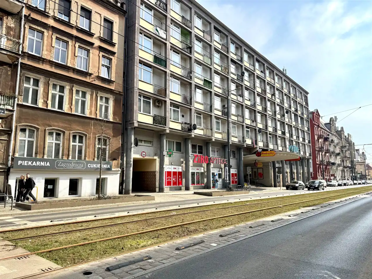 Niegdyś na parterze budynku znajdowało się Kino Wilda. Dziś jest tam sklep Biedronka i apteka.