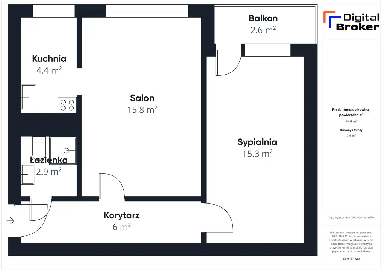 - Charakterystyka mieszkania 44 m2, 2 pokoje